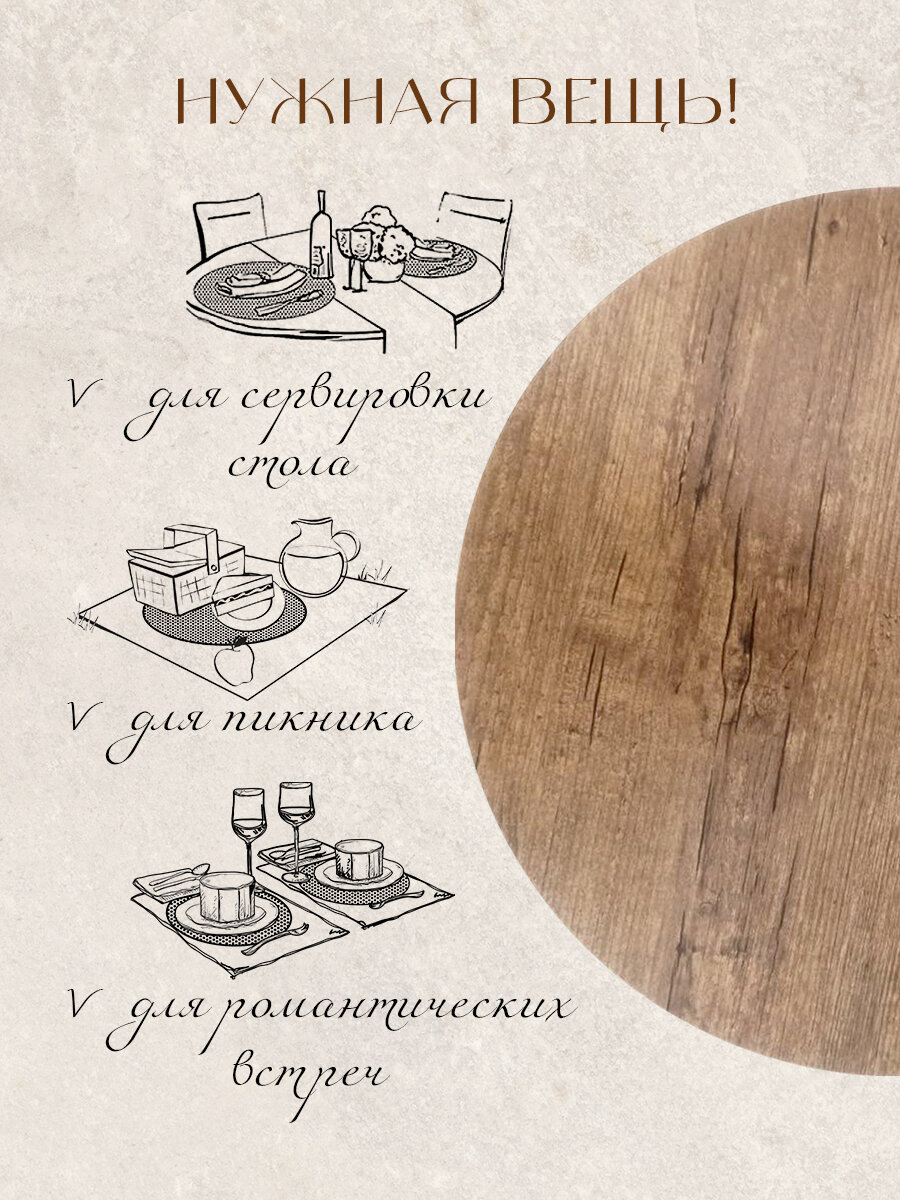 Салфетки на стол сервировочные, плейсмат, ПВХ, D38 см, набор 2 шт, дерево, ORIGINAL интересное:
