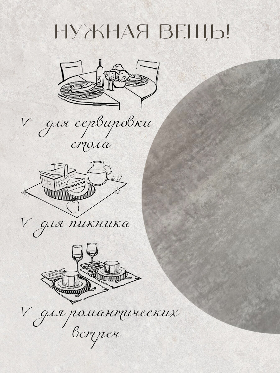 Плейсмат, салфетка на стол, ПВХ, D38 см, набор 2 шт, бетон, ORIGINAL интересное: