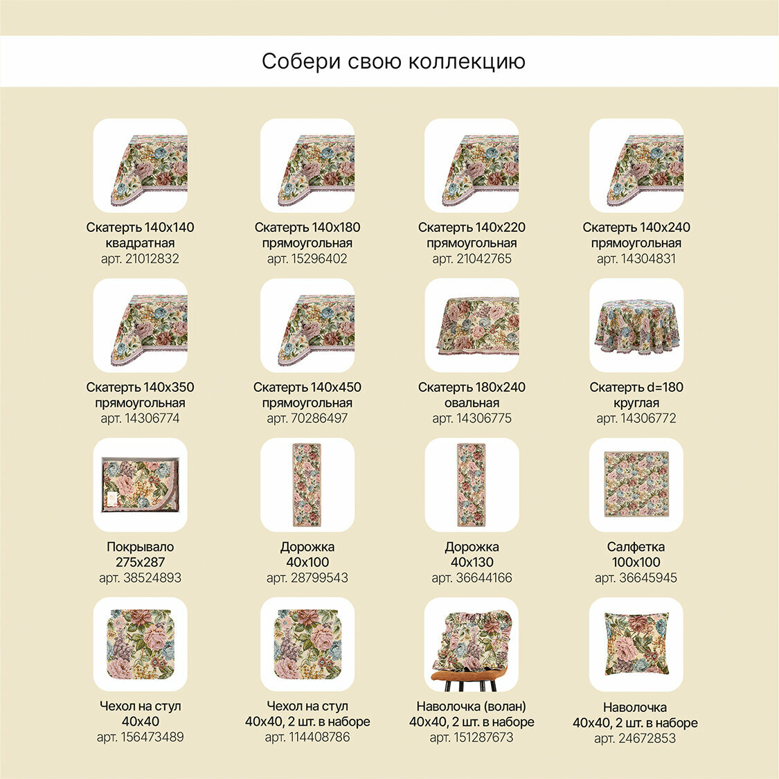 Овальная скатерть из гобелена 180х240см с цветочными узорами