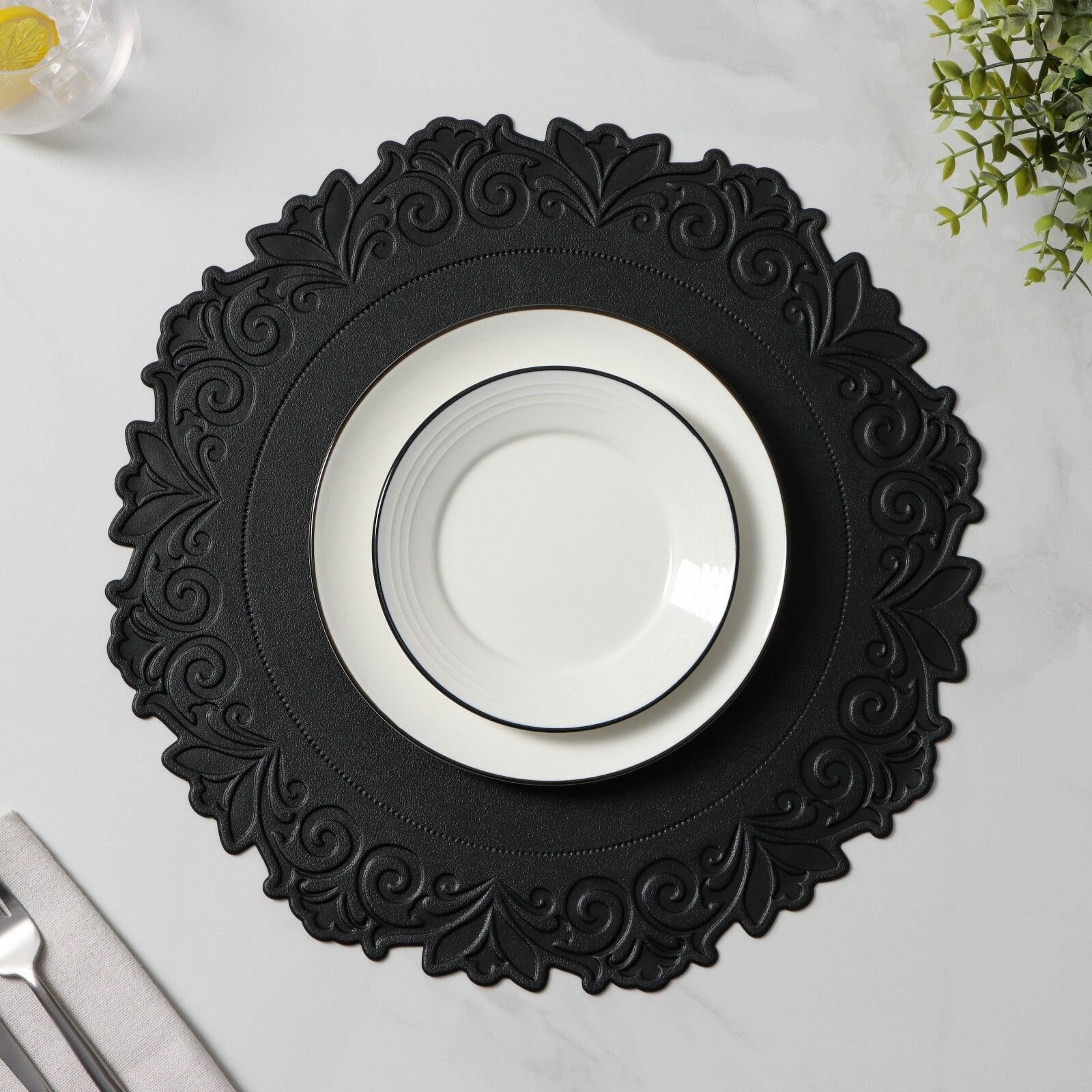Купить Набор салфеток сервировочных Элоиза , d 37,5 см, 4 шт, цвет чёрный