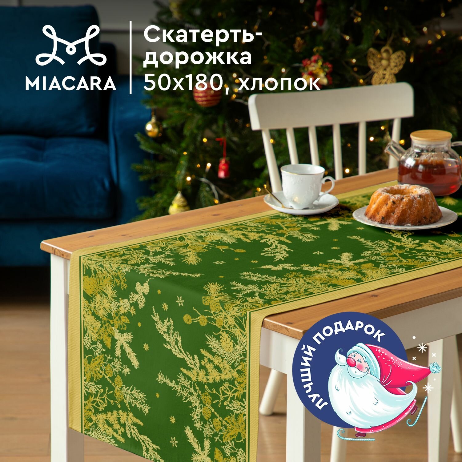 Скатерть дорожка на стол 50х180 Mia Cara 30678-1 Noble winter зеленый интересное: