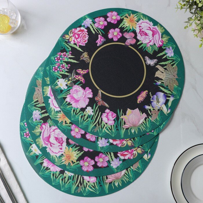 Набор салфеток сервировочных "Бутоны", d-38 см, 4 шт