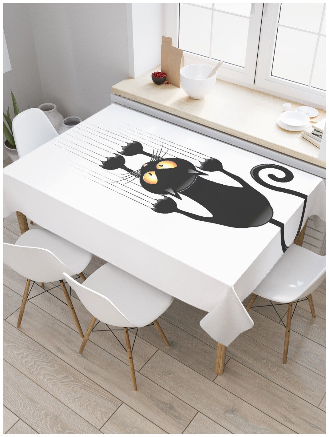 Купить Прямоугольная тканевая скатерть на стол с рисунком "Вредный кот" 120 на 145 см, JoyArty