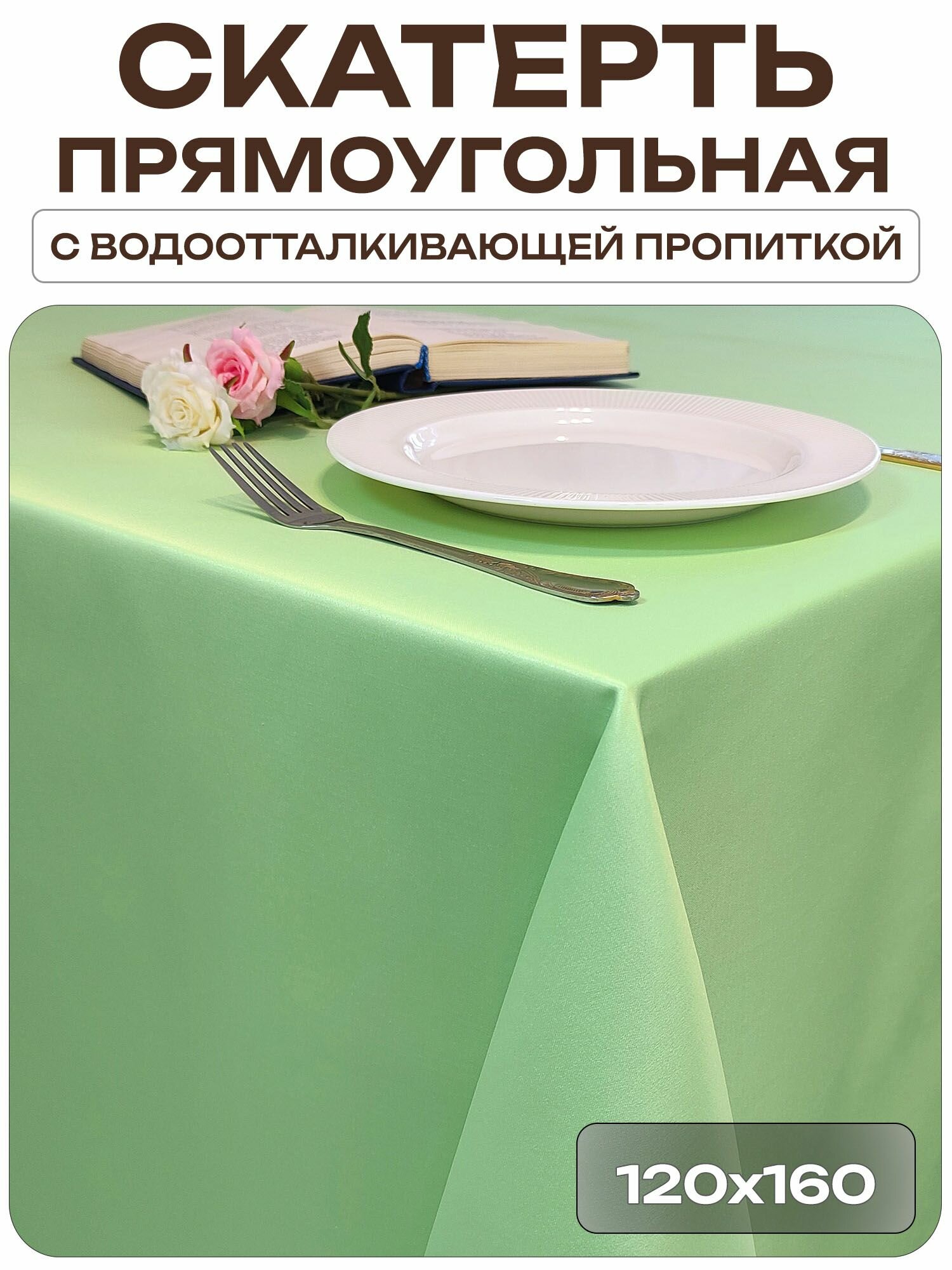 Скатерть 120x160 см. цвет фисташковый без рисунка с пропиткой от загрязнений