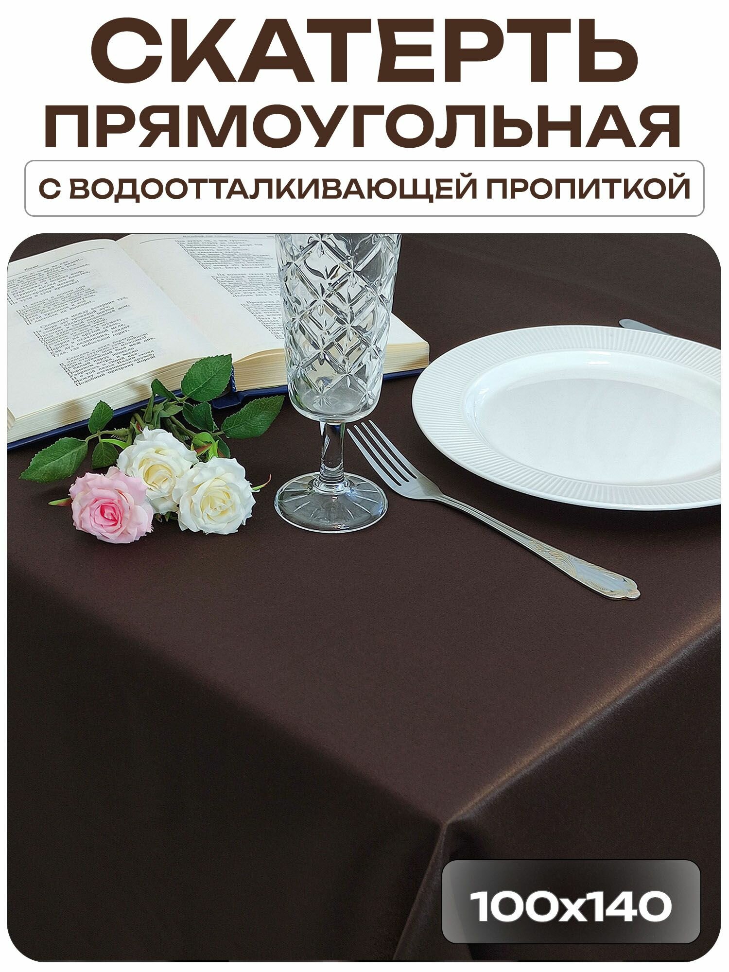 СохранитьСкатерть 100x140 см. цвет коричневый без рисунка с пропиткой от загрязнений интересное: