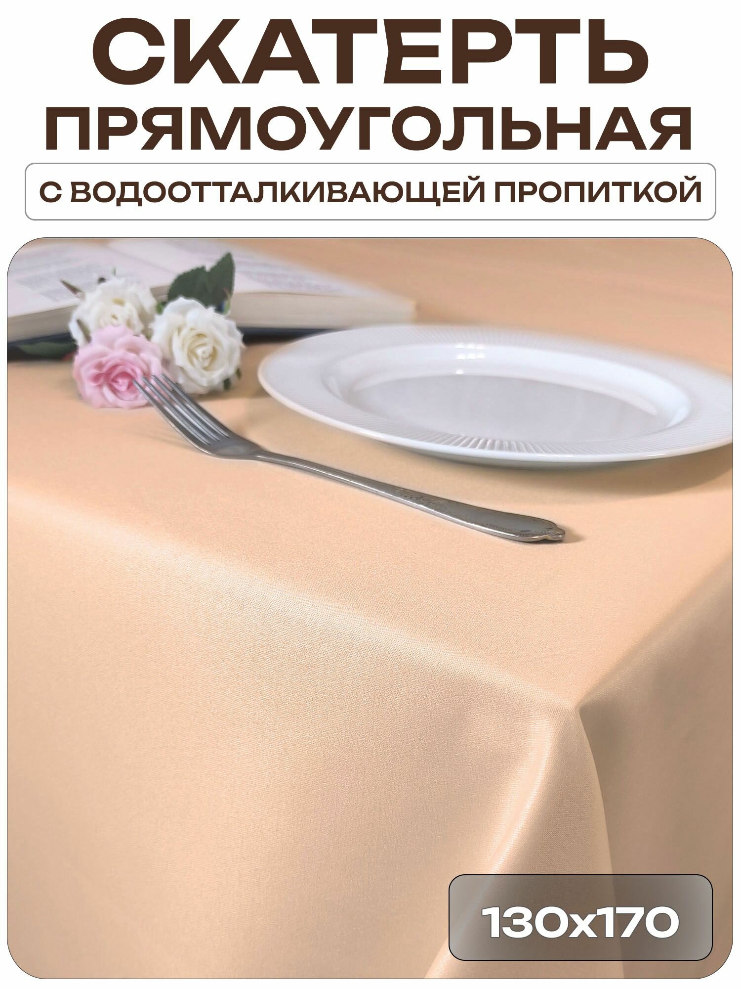 Скатерть 130x170 см. цвет шампань без рисунка с пропиткой от загрязнений
