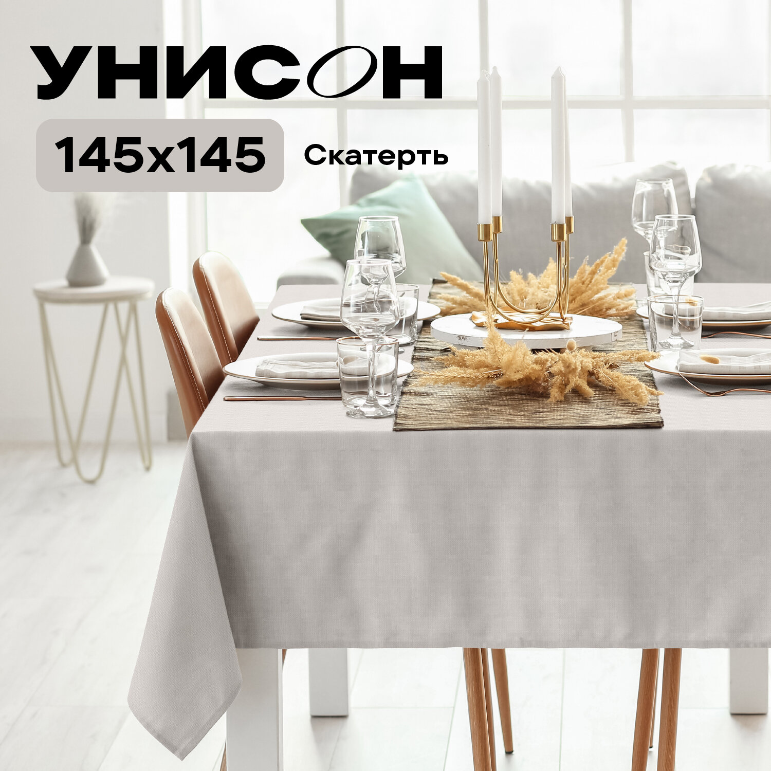 Скатерть на стол 145х145 "Унисон" рис 30004-15 Basic бежевый интересное: