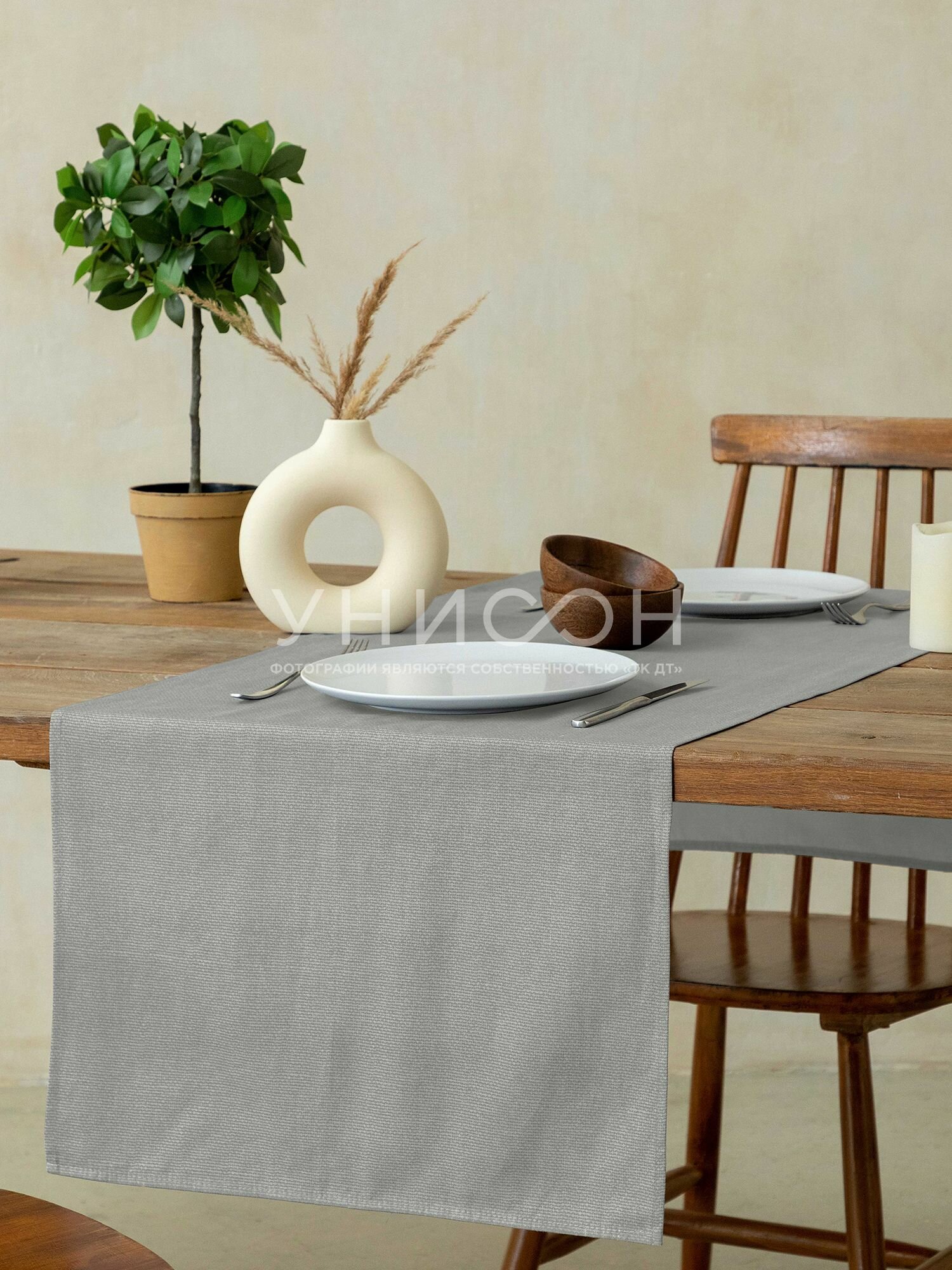Скатерть на стол дорожка 50х145 "Унисон" рис 30004-12 Basic светло-серый интересное: