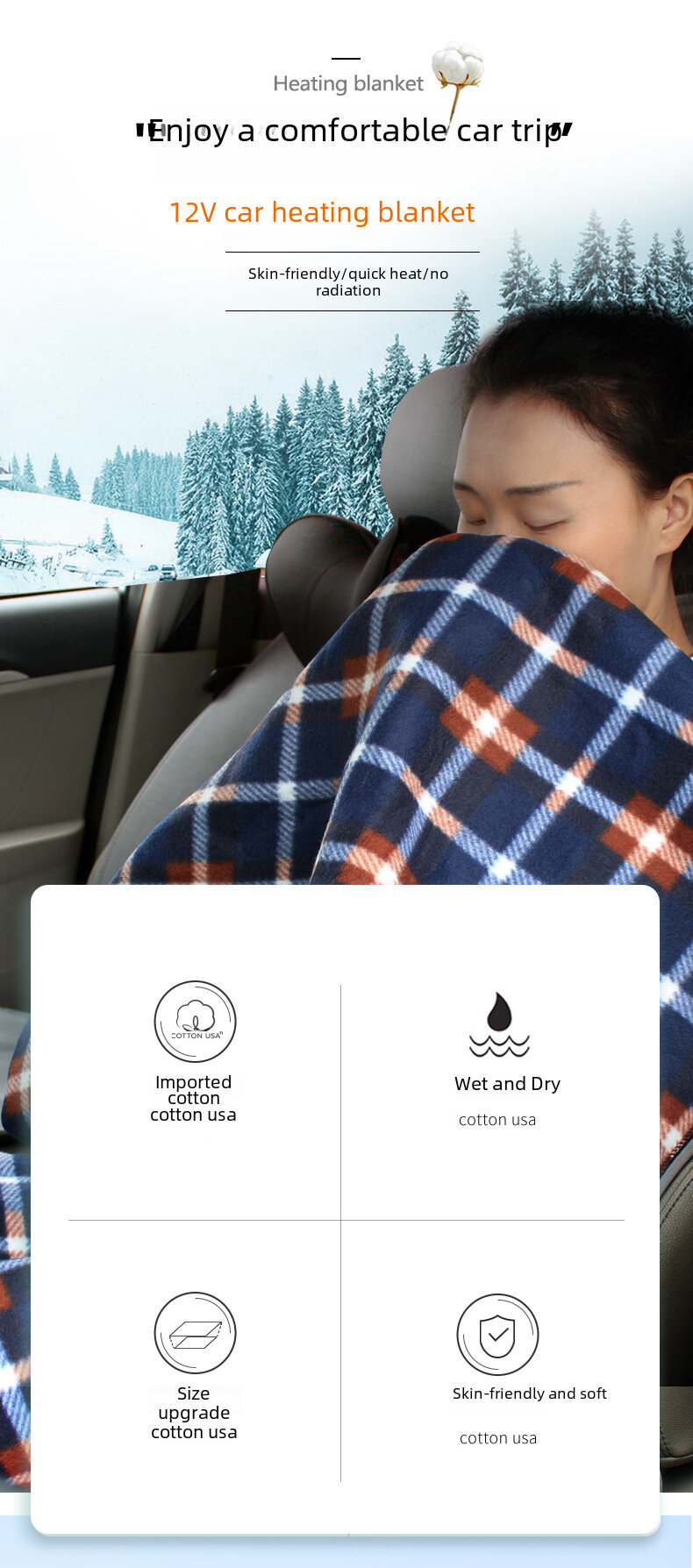 Автомобильное одеяло с подогревом, 12В, серая и черная сетка