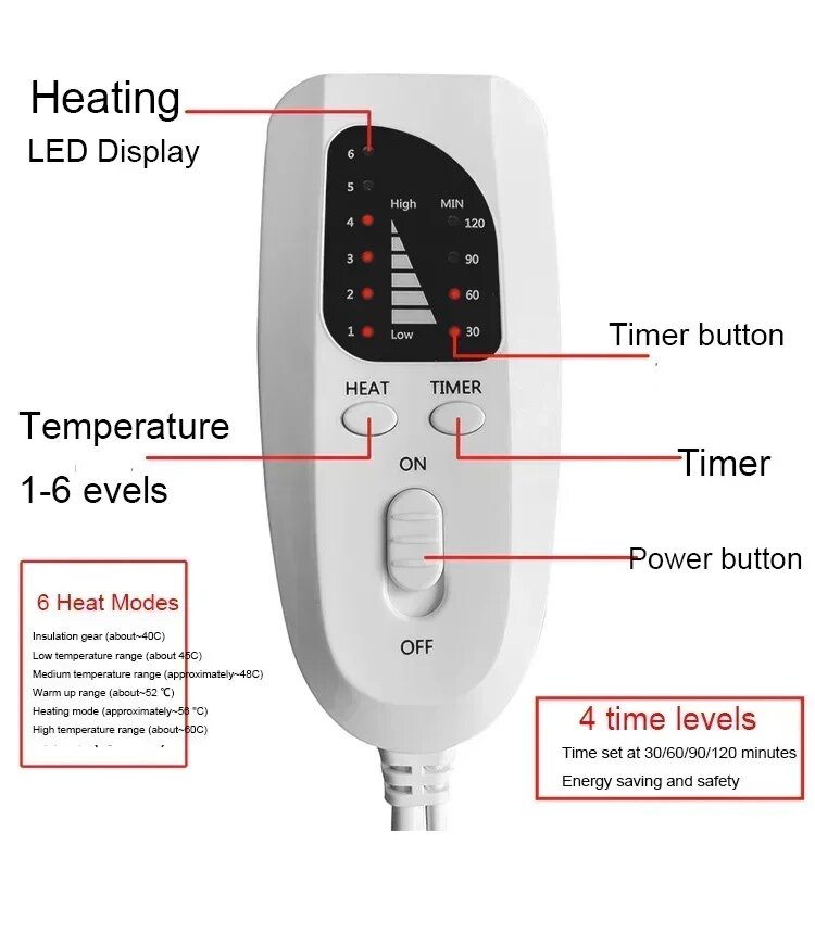Одеяло с подогревом , электропростынь 150х180 см, электроодеяло, 9 режимов нагрева, 2 зоны оборева.