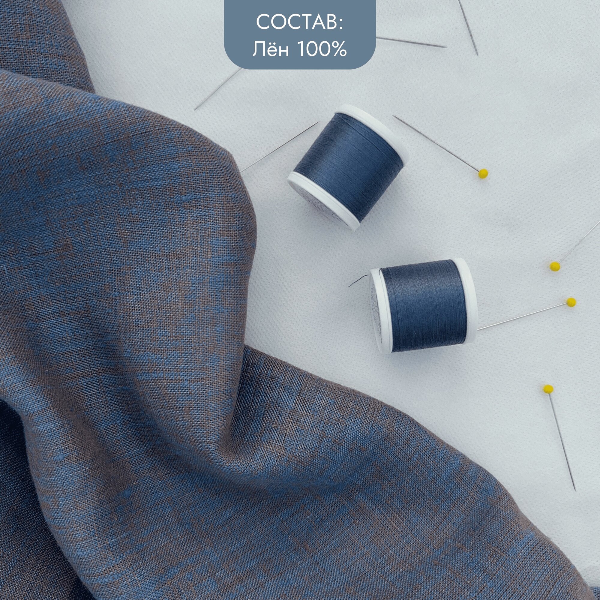 Ткань на отрез, костюмная лён 100% "Грязный джинс" 0,5х1,5 м, меланж сине-жёлтый интересное: