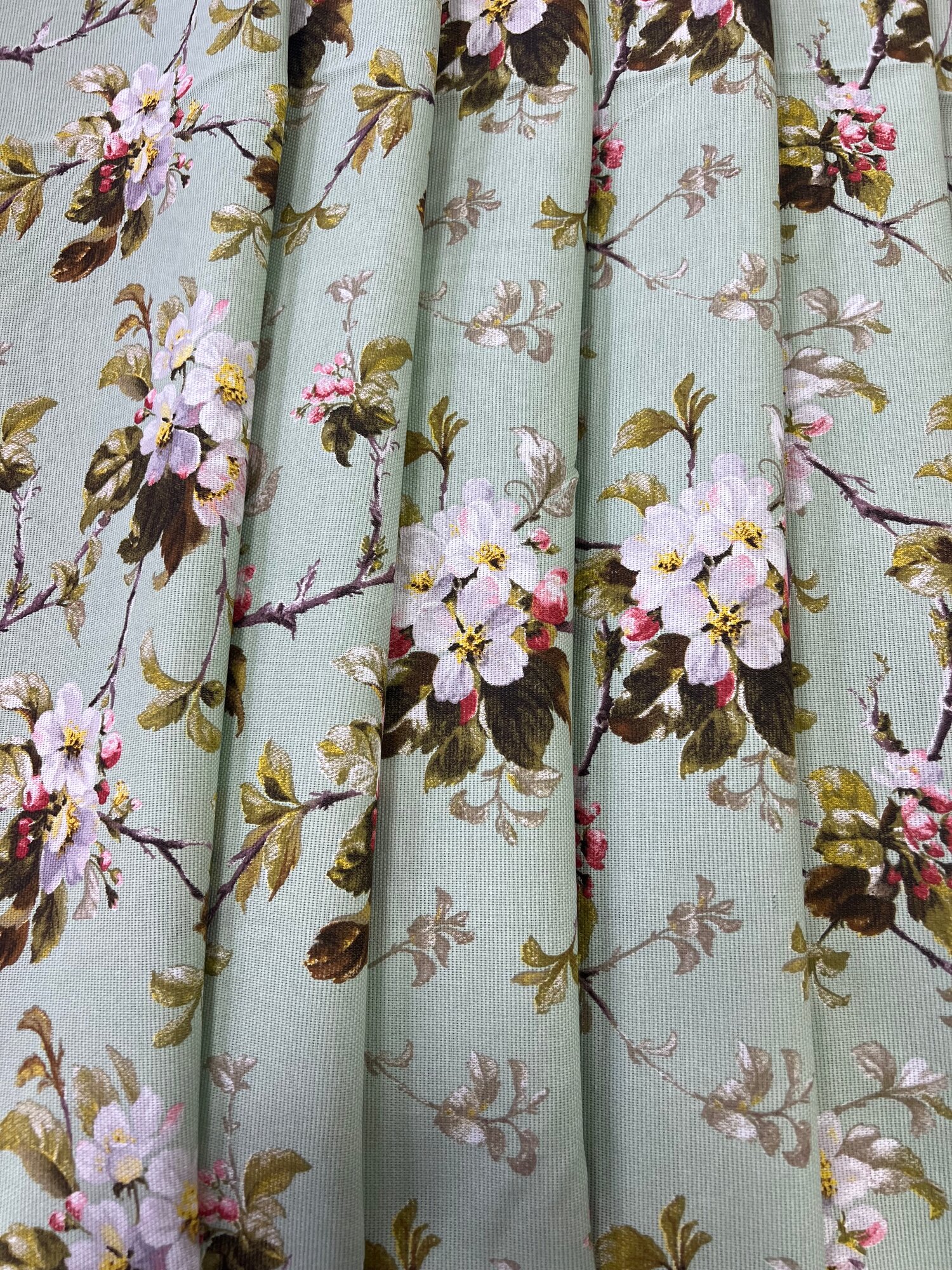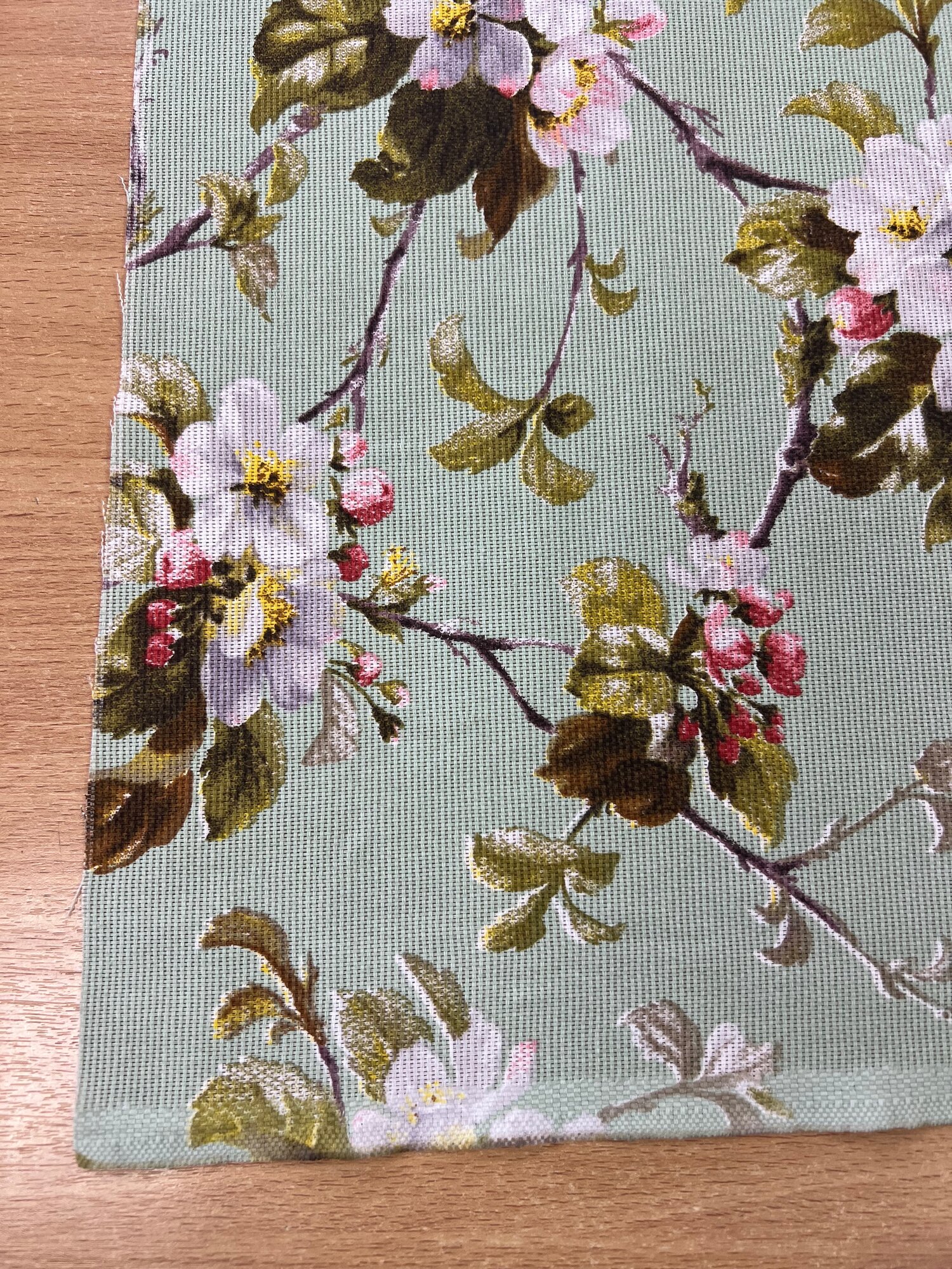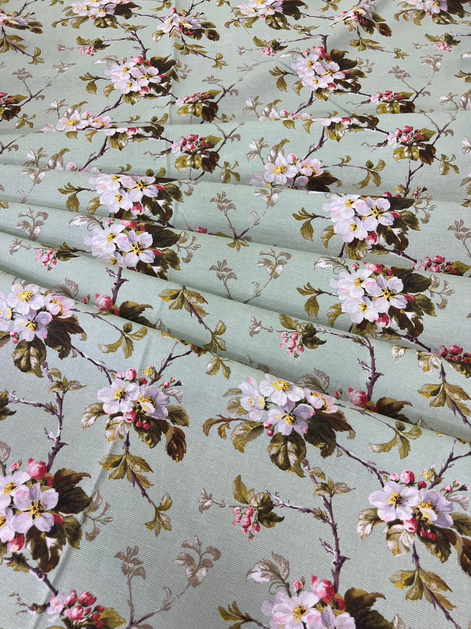 Ткань Рогожка набивная "Яблоневый цвет", цвет фисташковый, ширина 150 см, на отрез интересное: