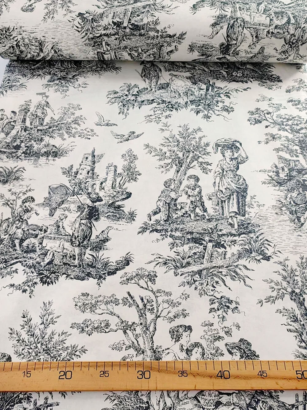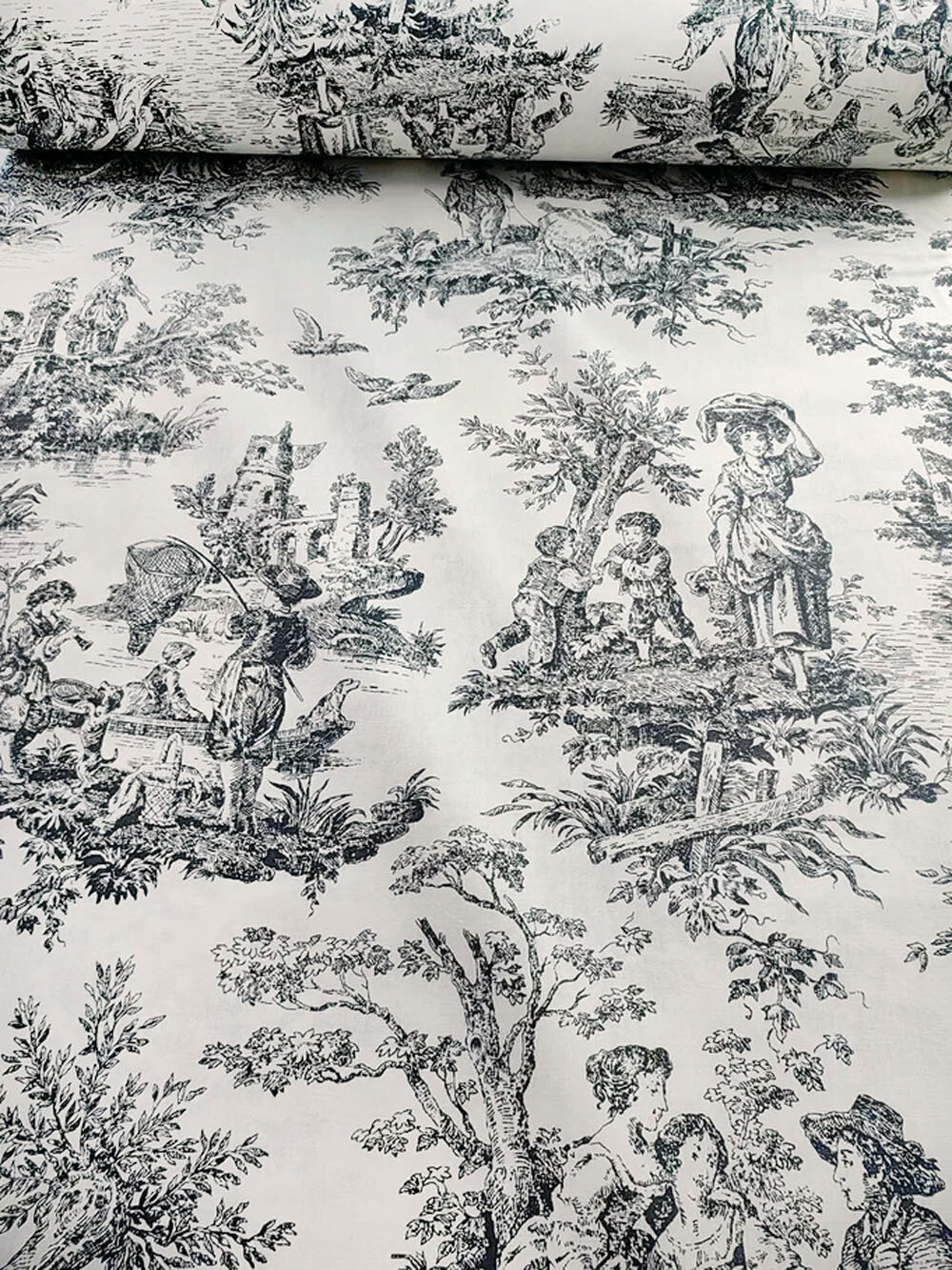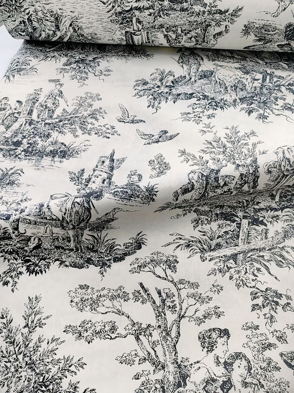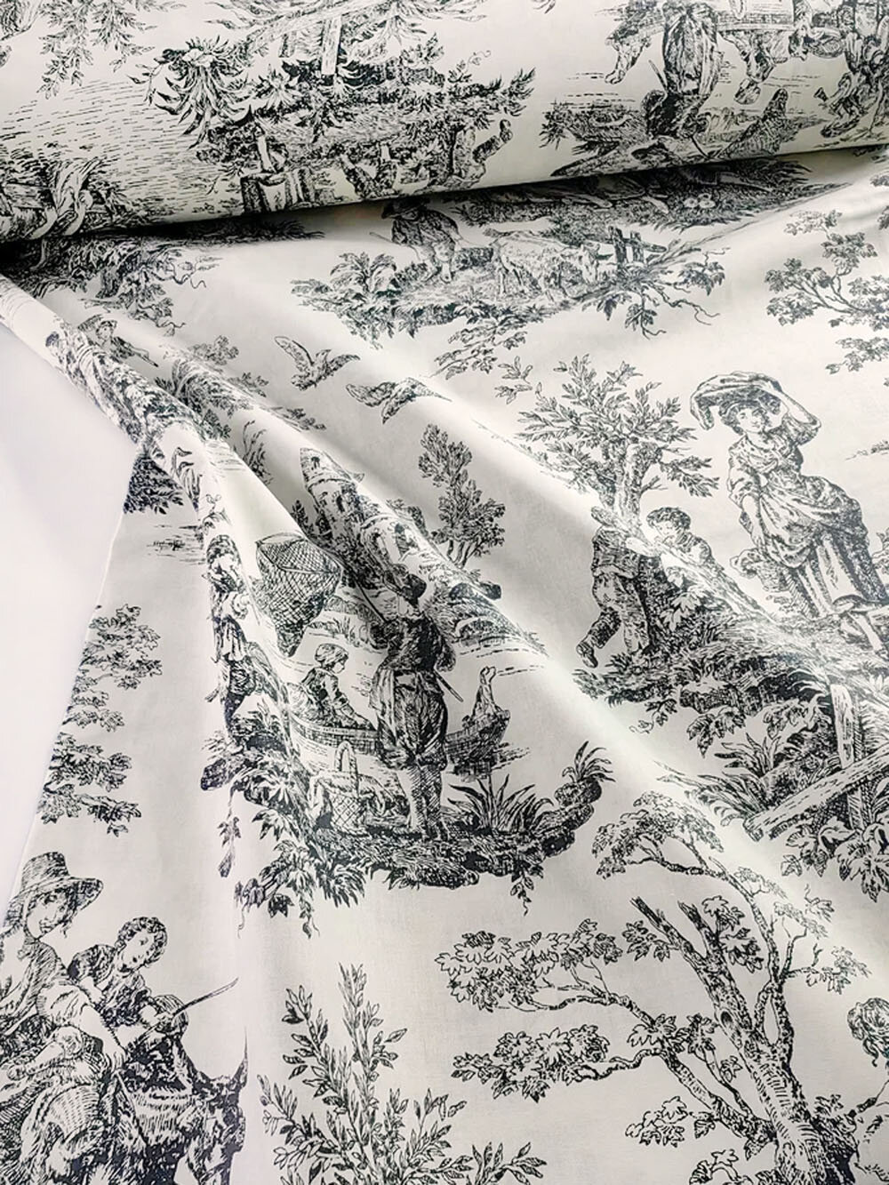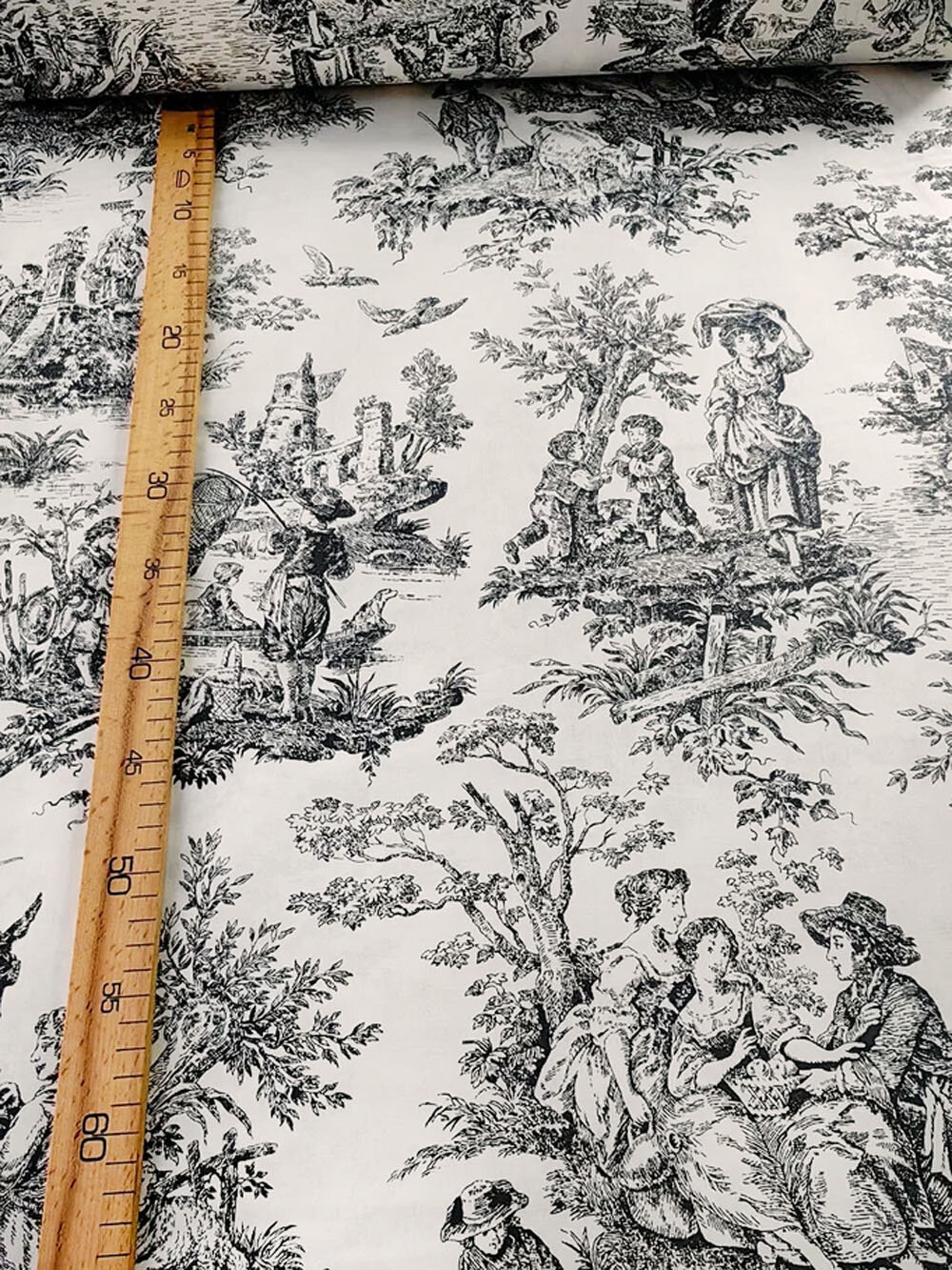 Ткань для шитья, 100 % хлопок поплин Турция, рисунок Туаль де Жуи черный, 1 м х 240 см интересное: