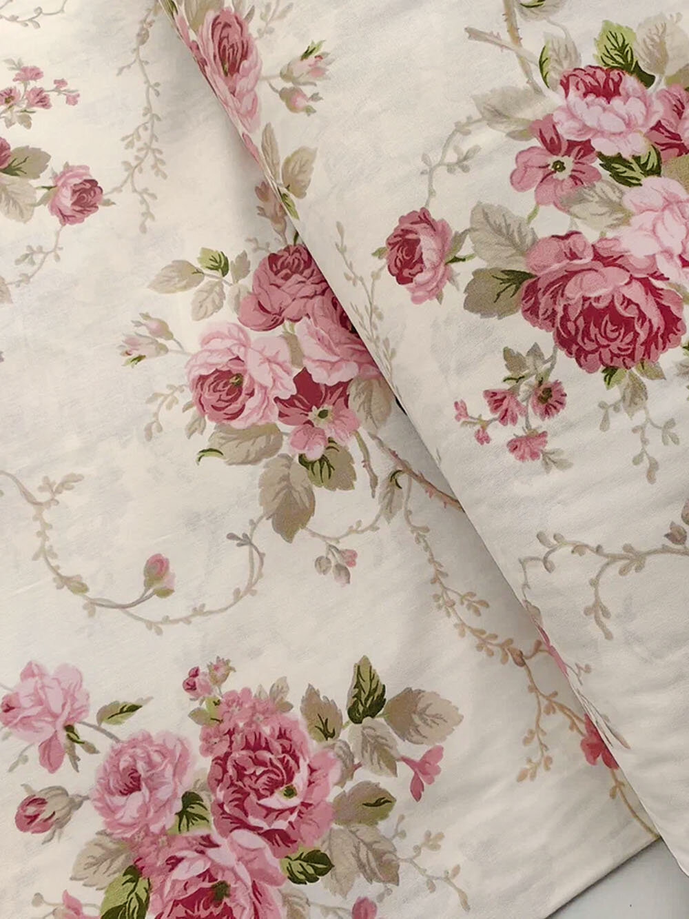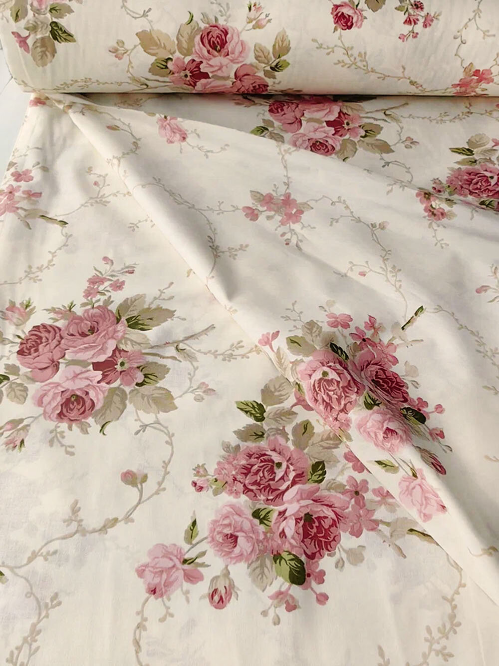 Купить Ткань для шитья, 100 % хлопок поплин Турция цвета айвори с винтажным рисунком в стиле Прованс, 1 м х 240 см