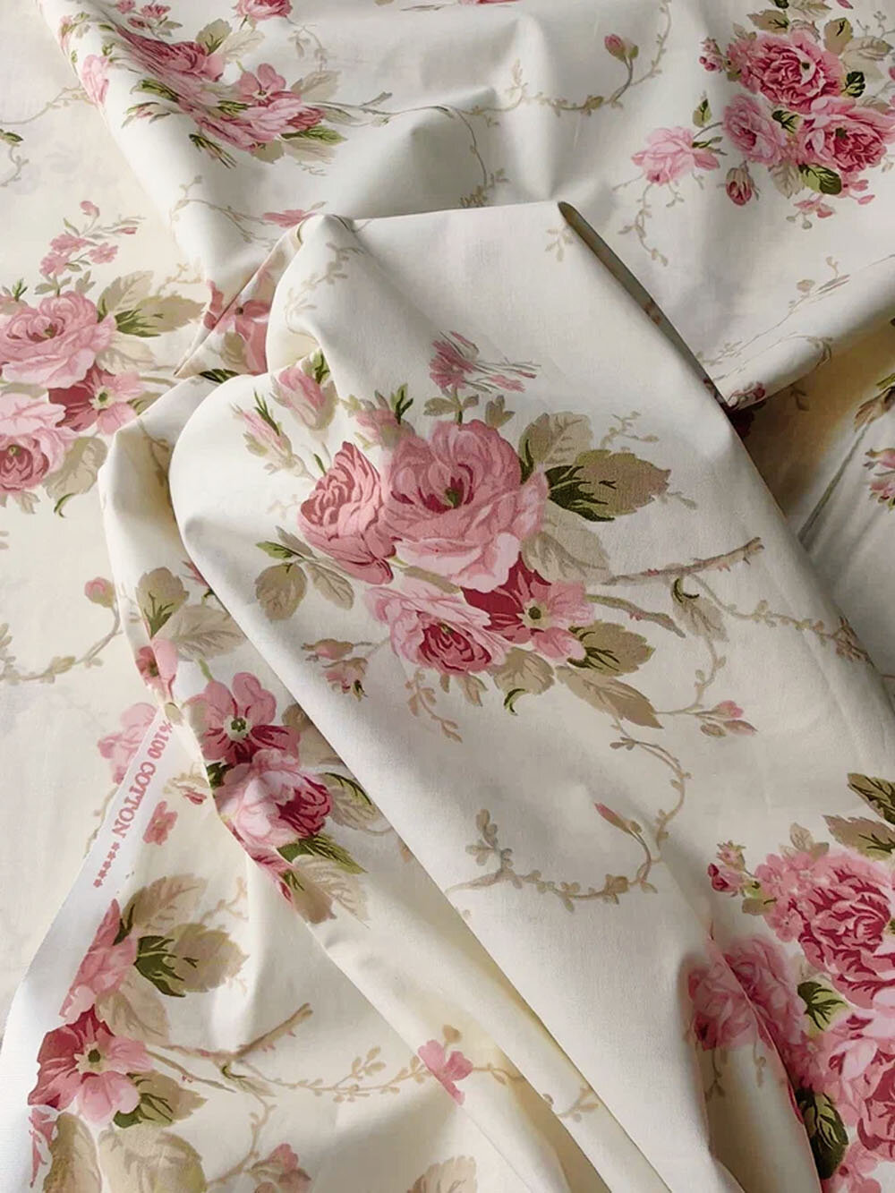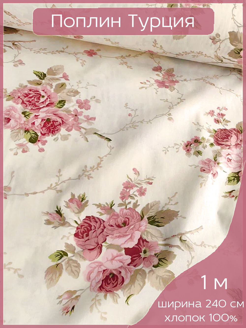 Ткань для шитья, 100 % хлопок поплин Турция цвета айвори с винтажным рисунком в стиле Прованс, 1 м х 240 см интересное: