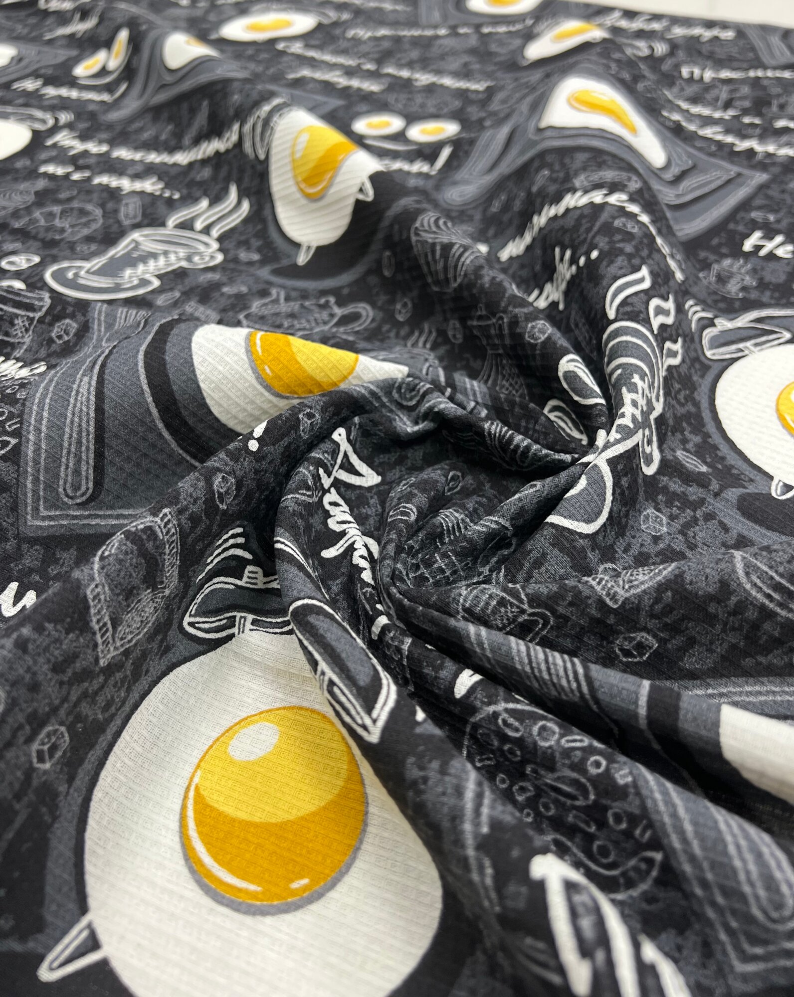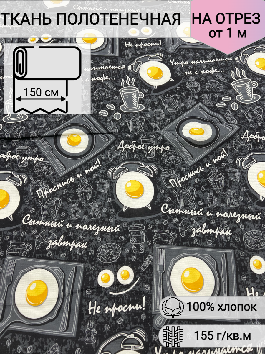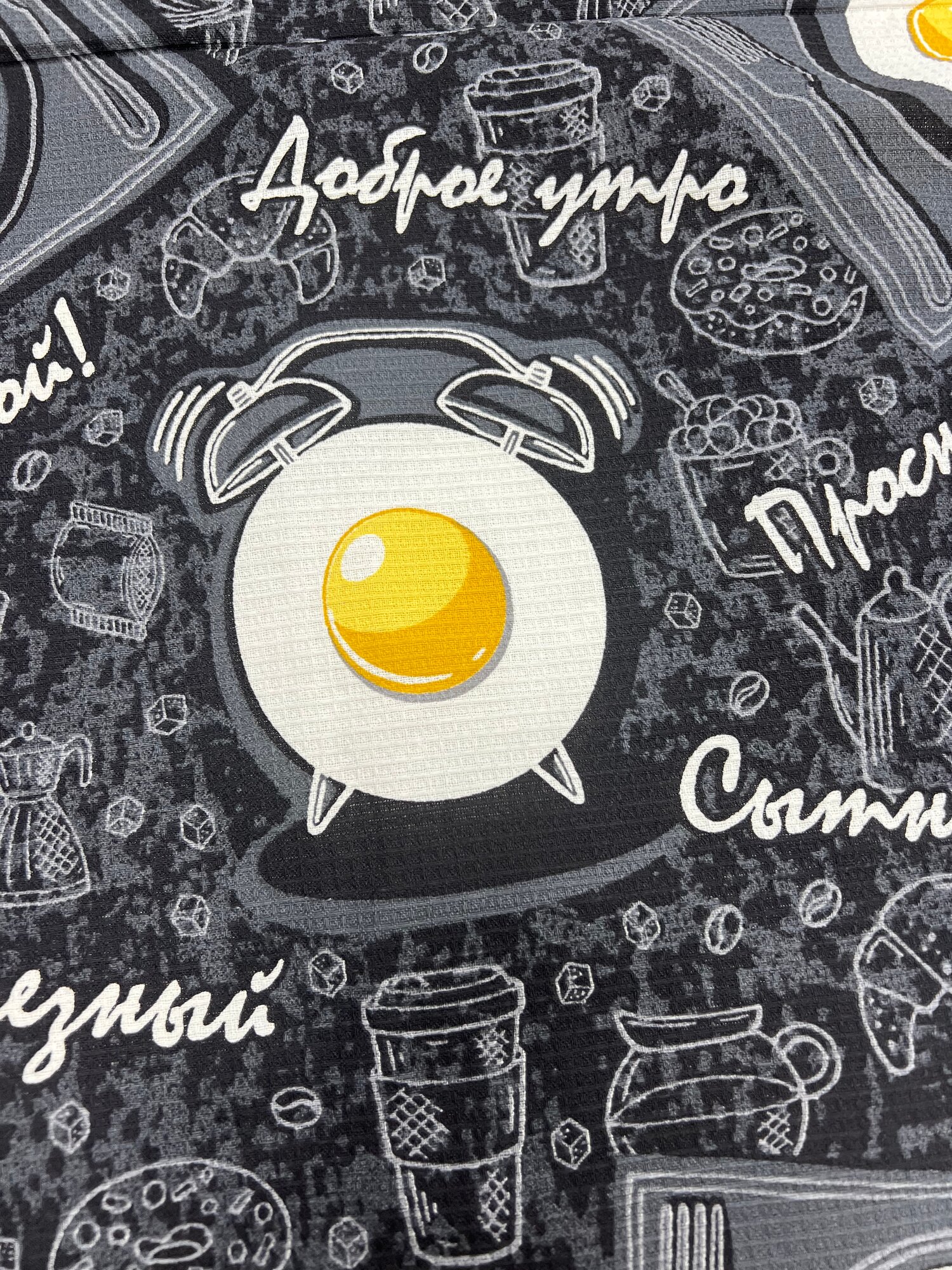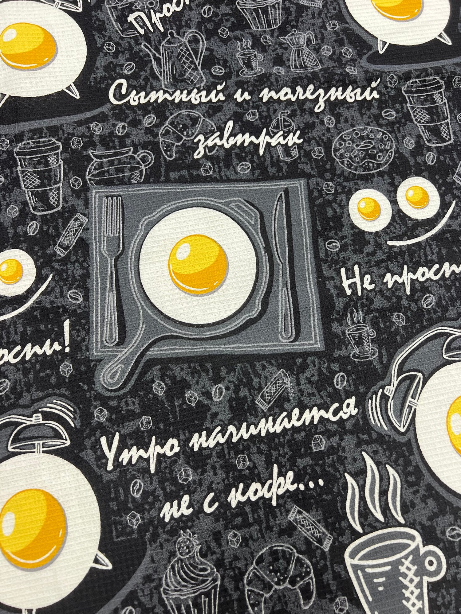Ткань для шитья Вафельное полотно, полотенечная набивная, Доброе Утро, ширина 150 см, 100% хлопок, на отрез интересное: