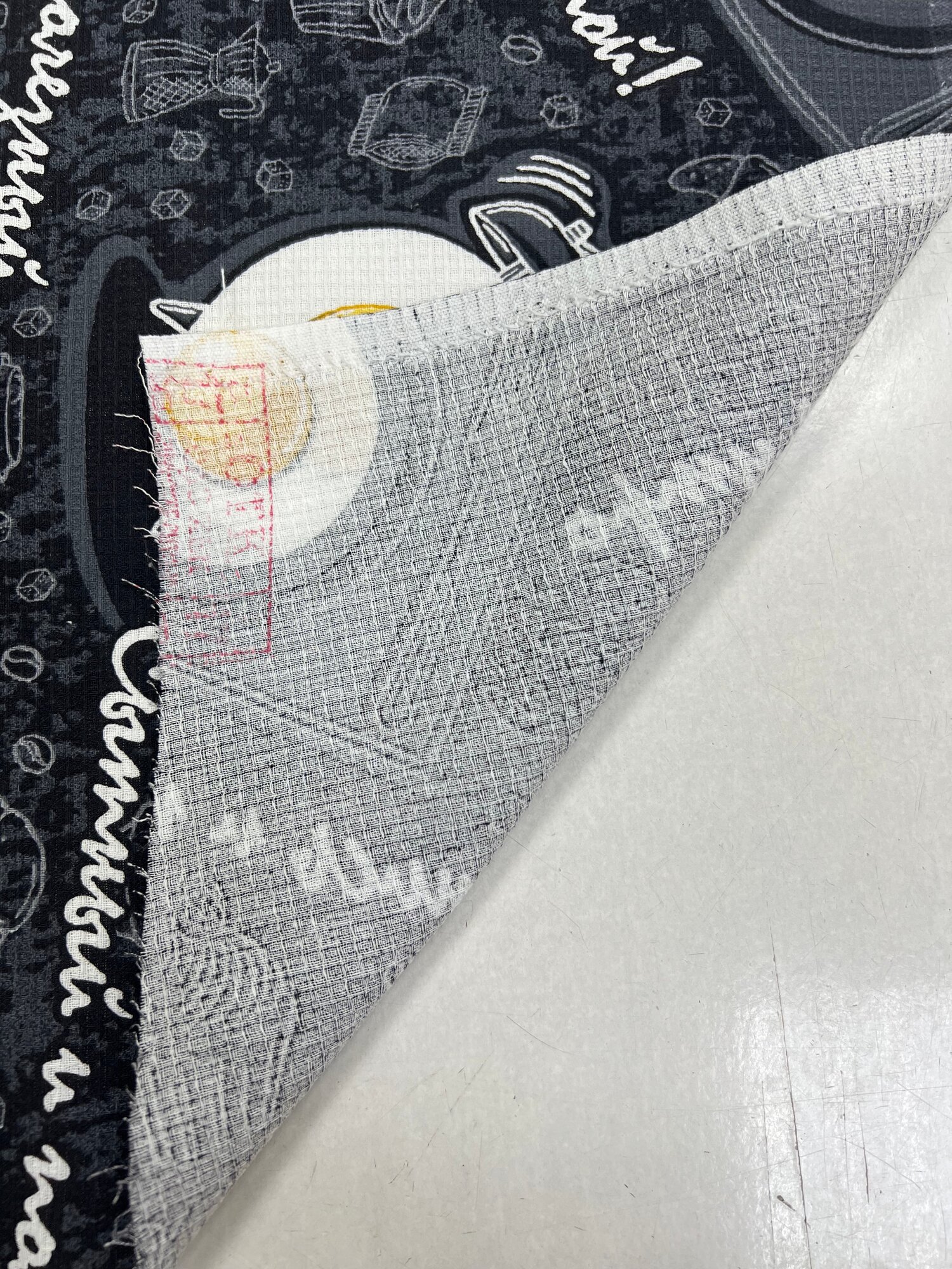 Ткань для шитья Вафельное полотно, полотенечная набивная, Кот и рыбка, ширина 150 см, на отрез