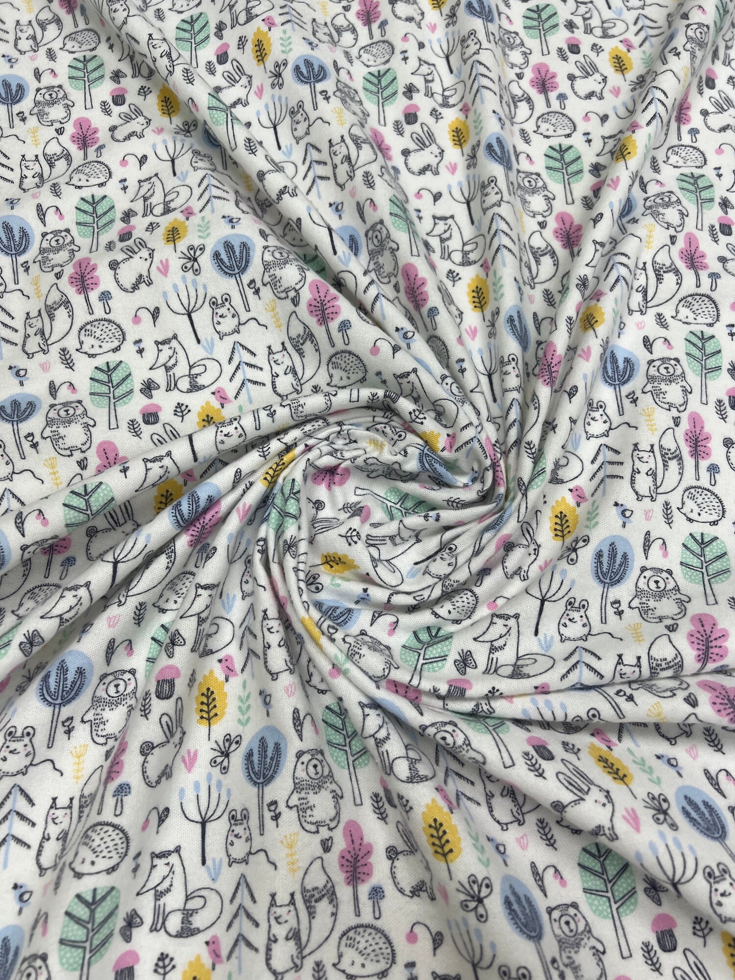 Купить Ткань для шитья Фланель детская, Лесные друзья, ширина 95 см, 100% хлопок, плотность 180 г/кв. м, на отрез