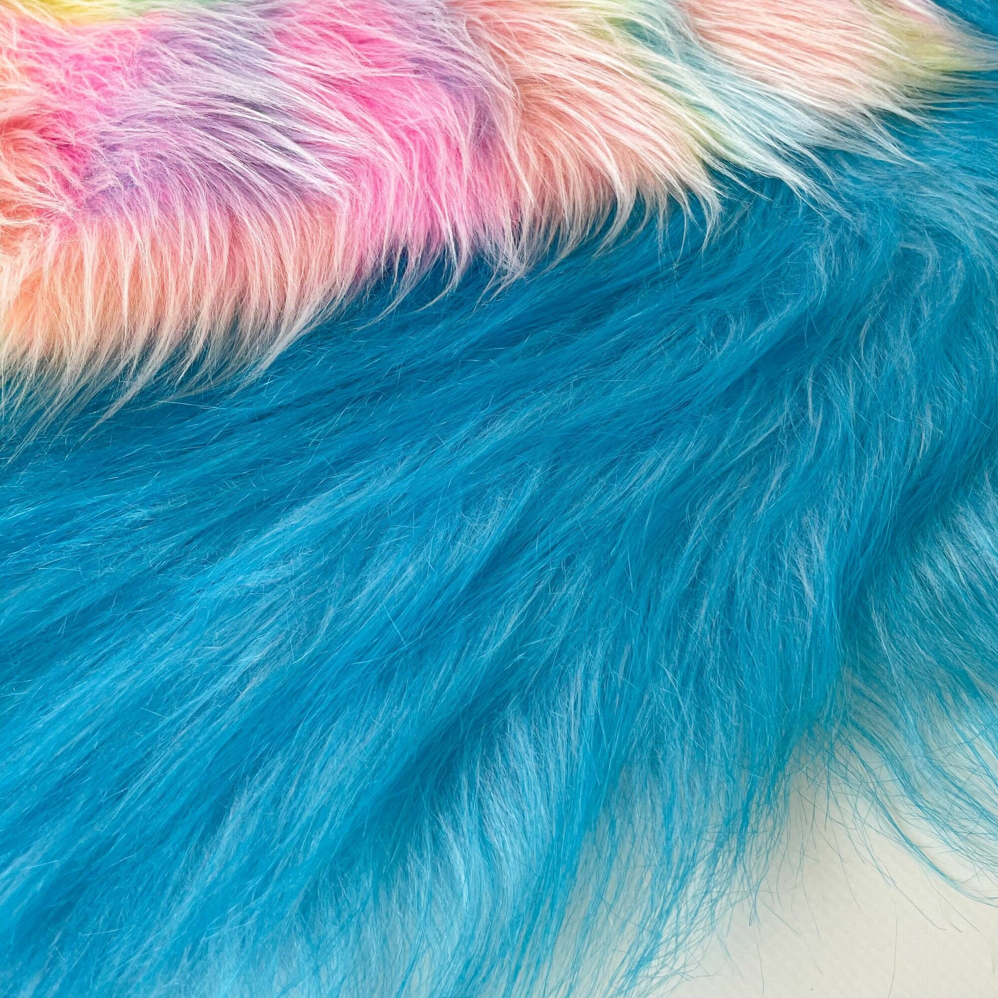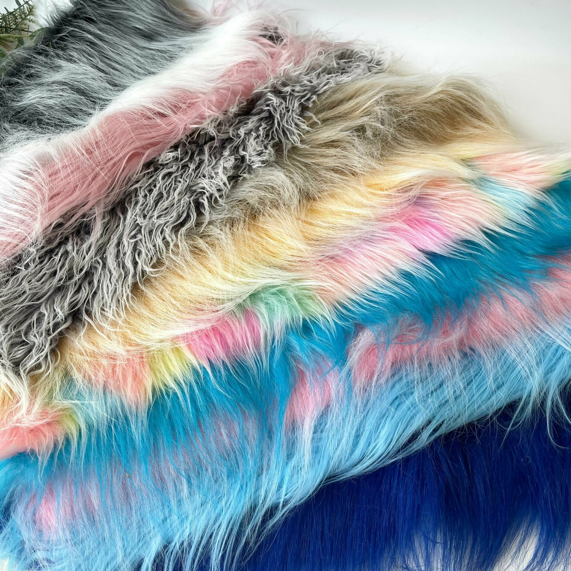Мех длинноворсовый (ворс 4-5 см) искусственный для игрушек, для рукоделия, Радужный, Отрез 50х50 см
