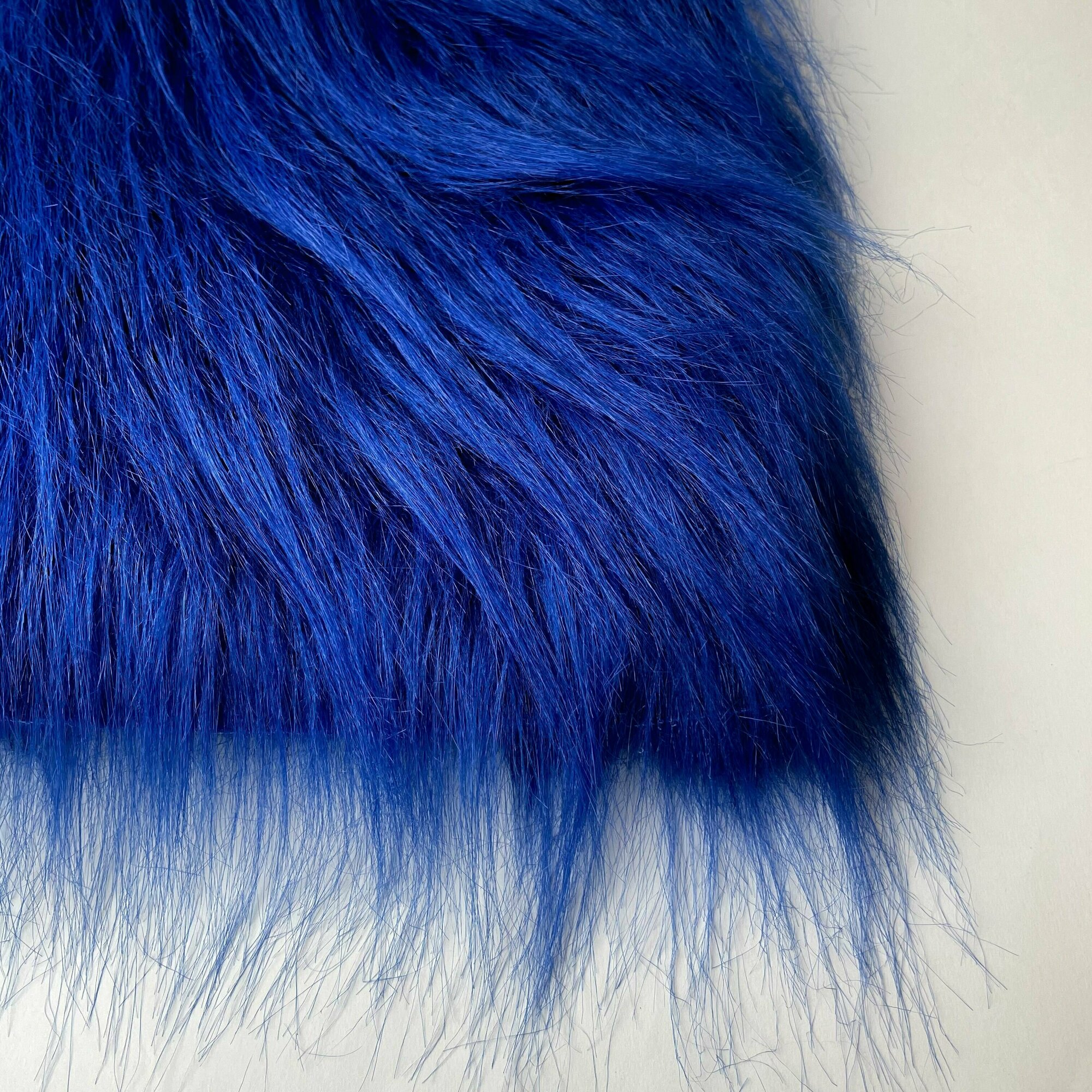 Купить Мех длинноворсовый (ворс 9см) для игрушек, мех искусственный для рукоделия, Синий, Отрез 50х50 см