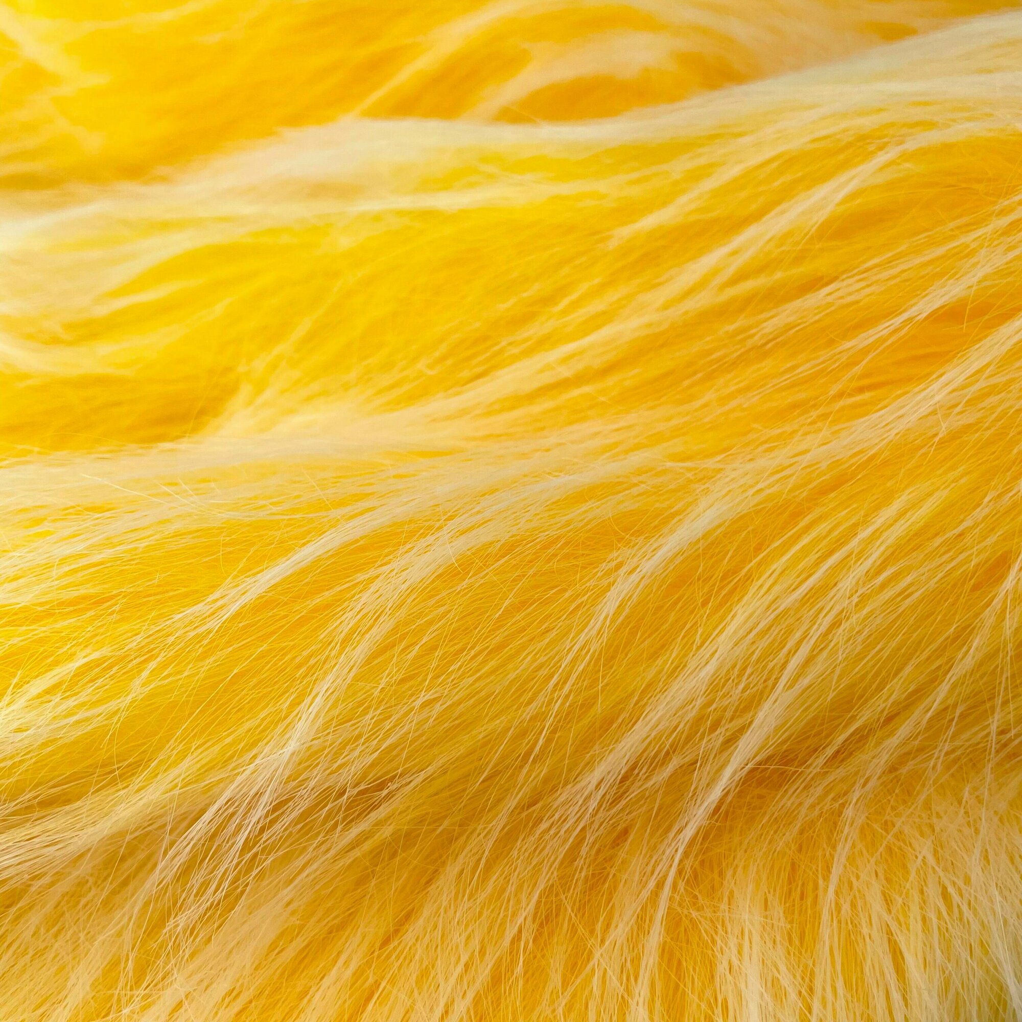 Купить Мех длинноворсовый (ворс 9см) для игрушек, мех искусственный для рукоделия, Ярко желтый, Отрез 50х50 см