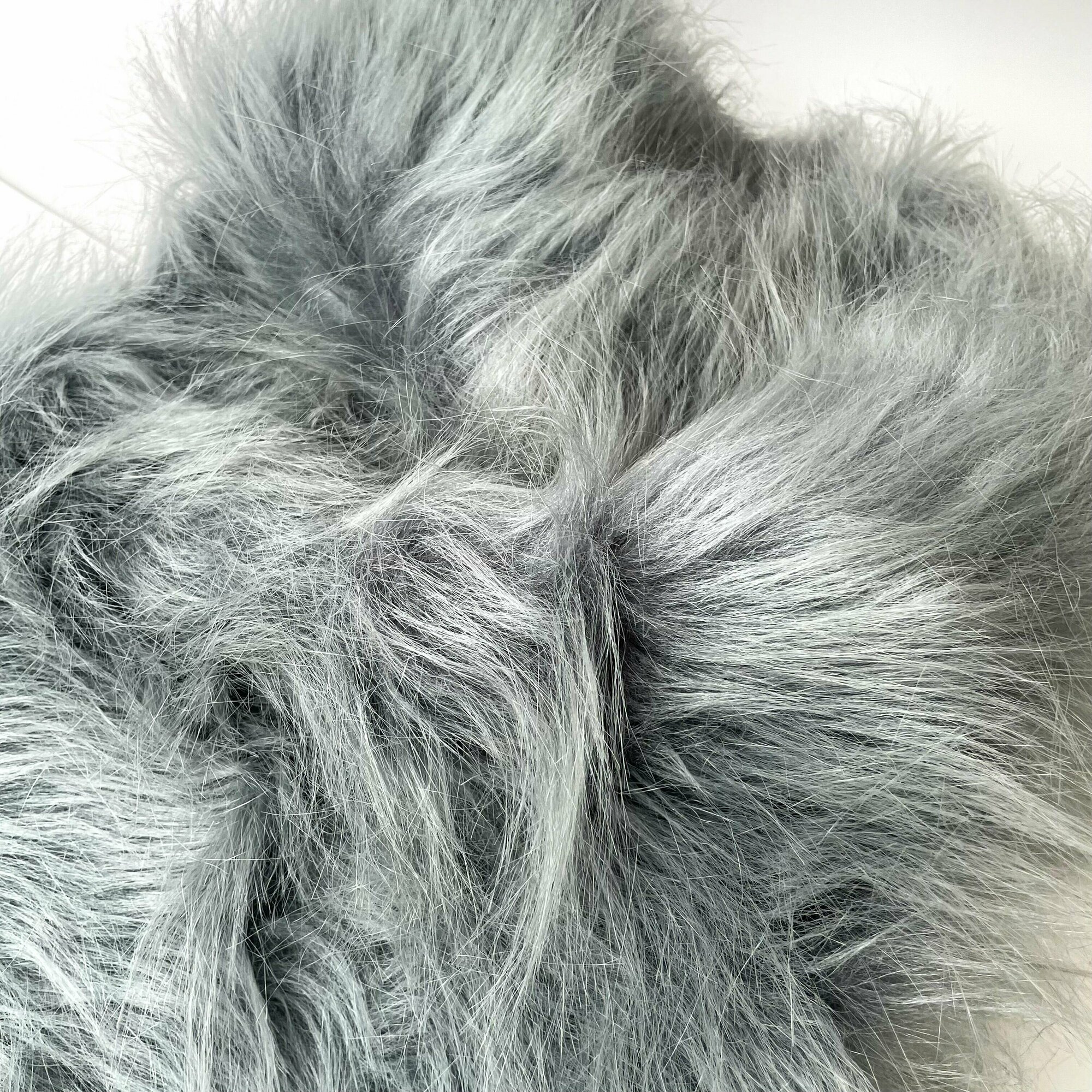 Мех длинноворсовый (ворс 9-10 см) для игрушек, мех искусственный для рукоделия, цвет Светло-серый, Отрез 40х50 см