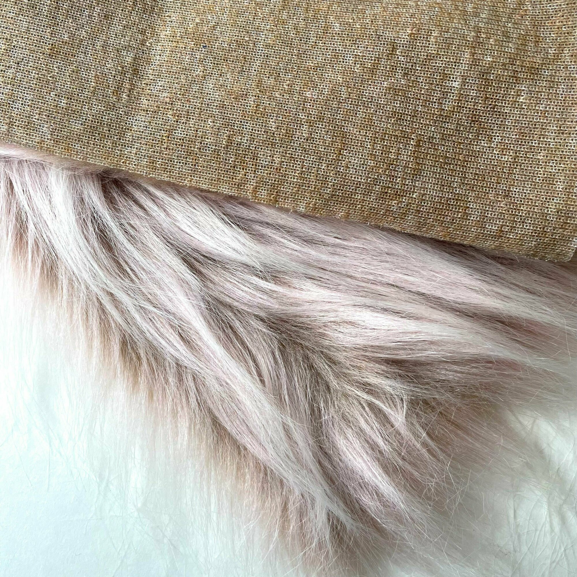 Мех длинноворсовый (ворс 9-10 см) для игрушек, мех искусственный для рукоделия, цвет Розовая Пенка, Отрез 40х50 см