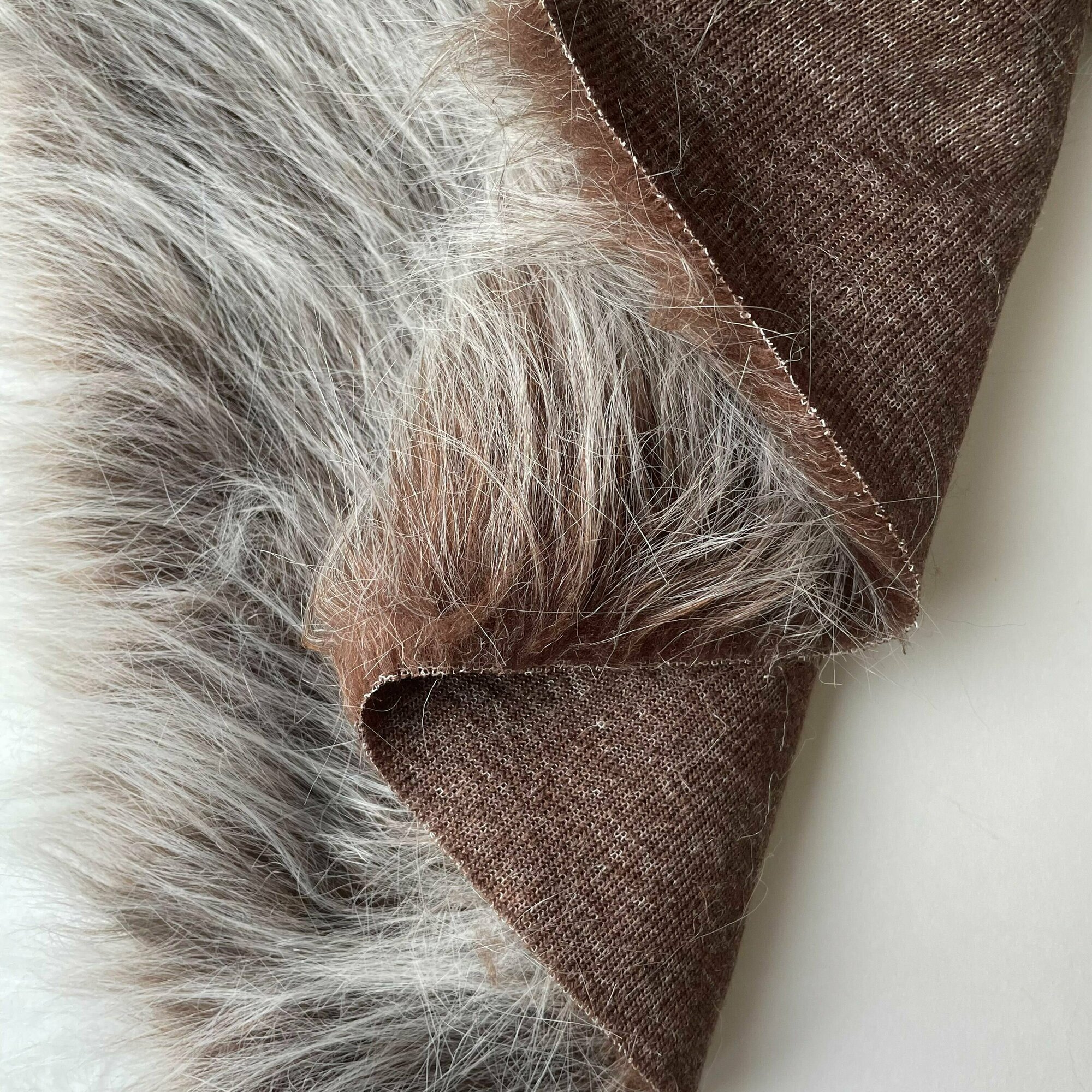 Мех длинноворсовый (ворс 9см) для игрушек, мех искусственный для рукоделия, Светло-коричневый с белыми кончиками, Отрез 50х50 см
