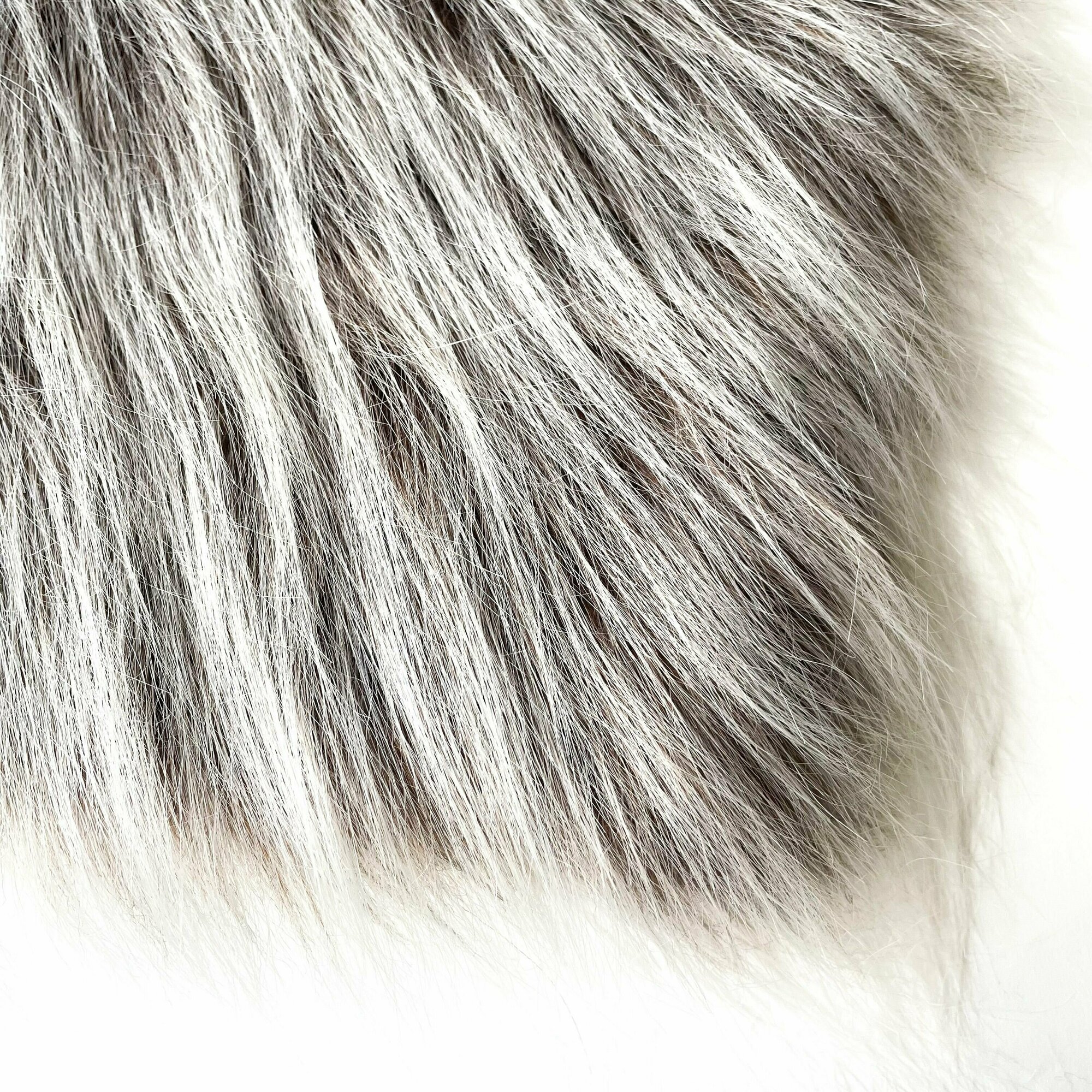 Мех длинноворсовый (ворс 9-10 см) для игрушек, мех искусственный для рукоделия, цвет Светло-серый, Отрез 40х50 см