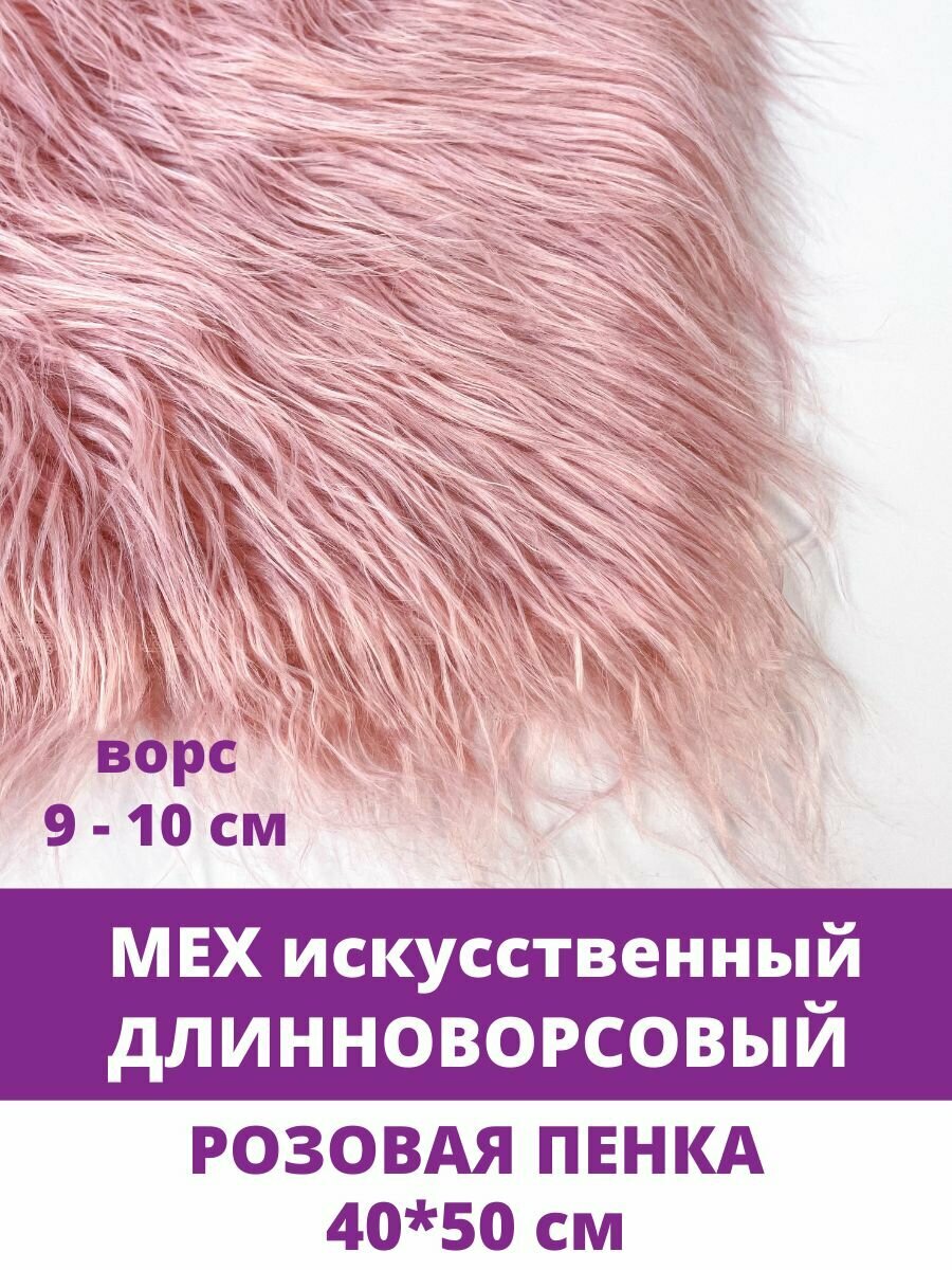 Купить Мех длинноворсовый (ворс 9-10 см) для игрушек, мех искусственный для рукоделия, цвет Розовая Пенка, Отрез 40х50 см