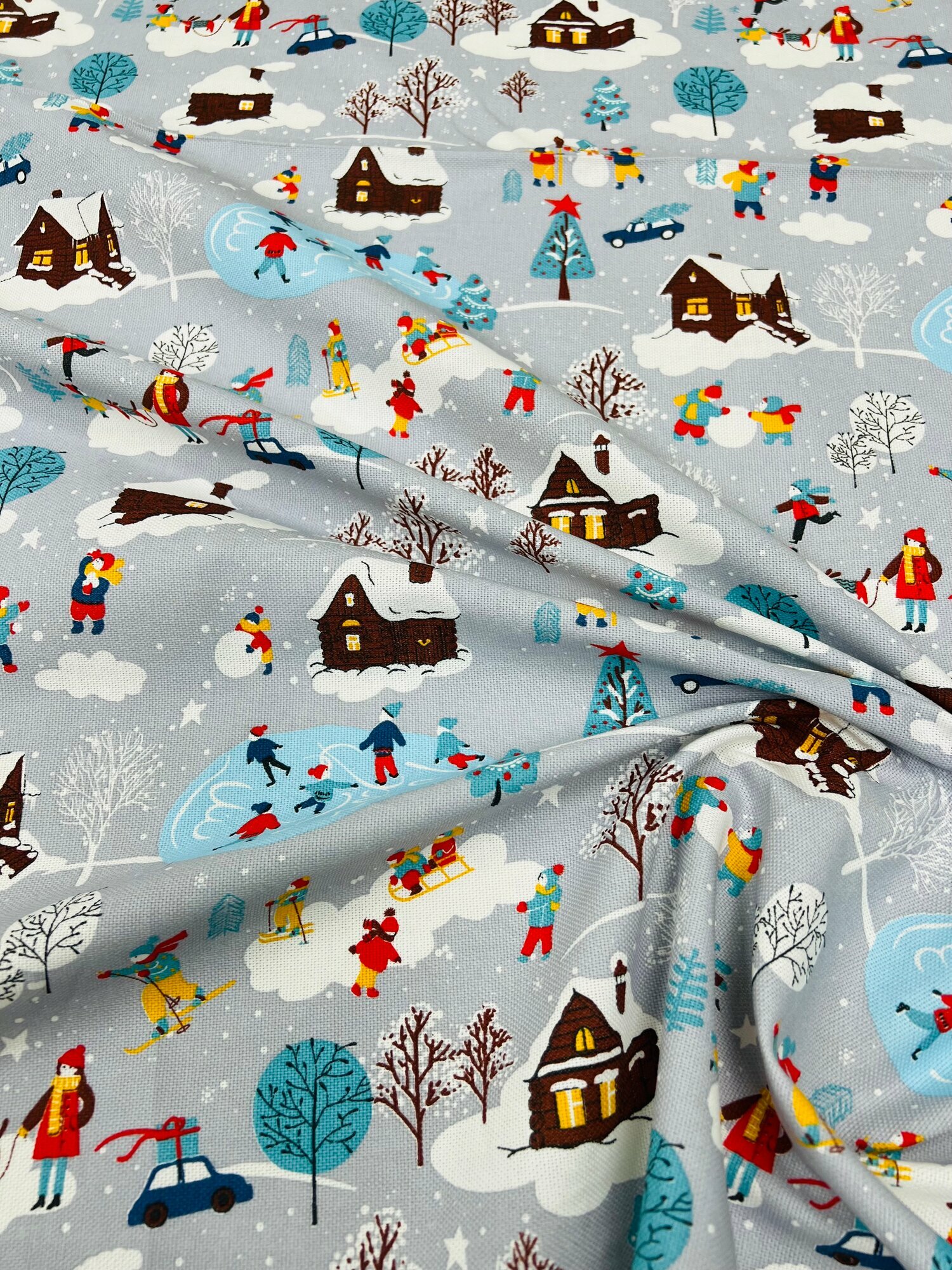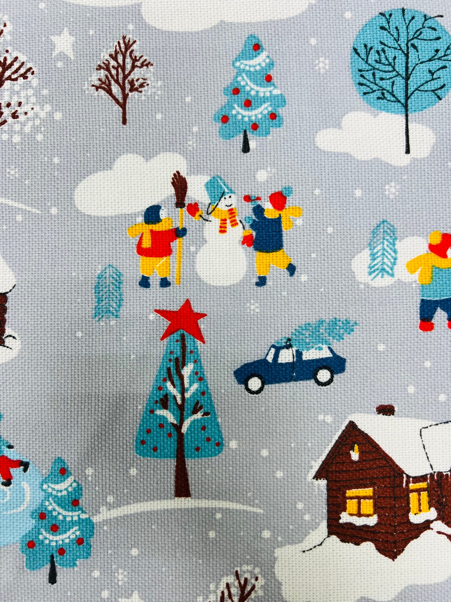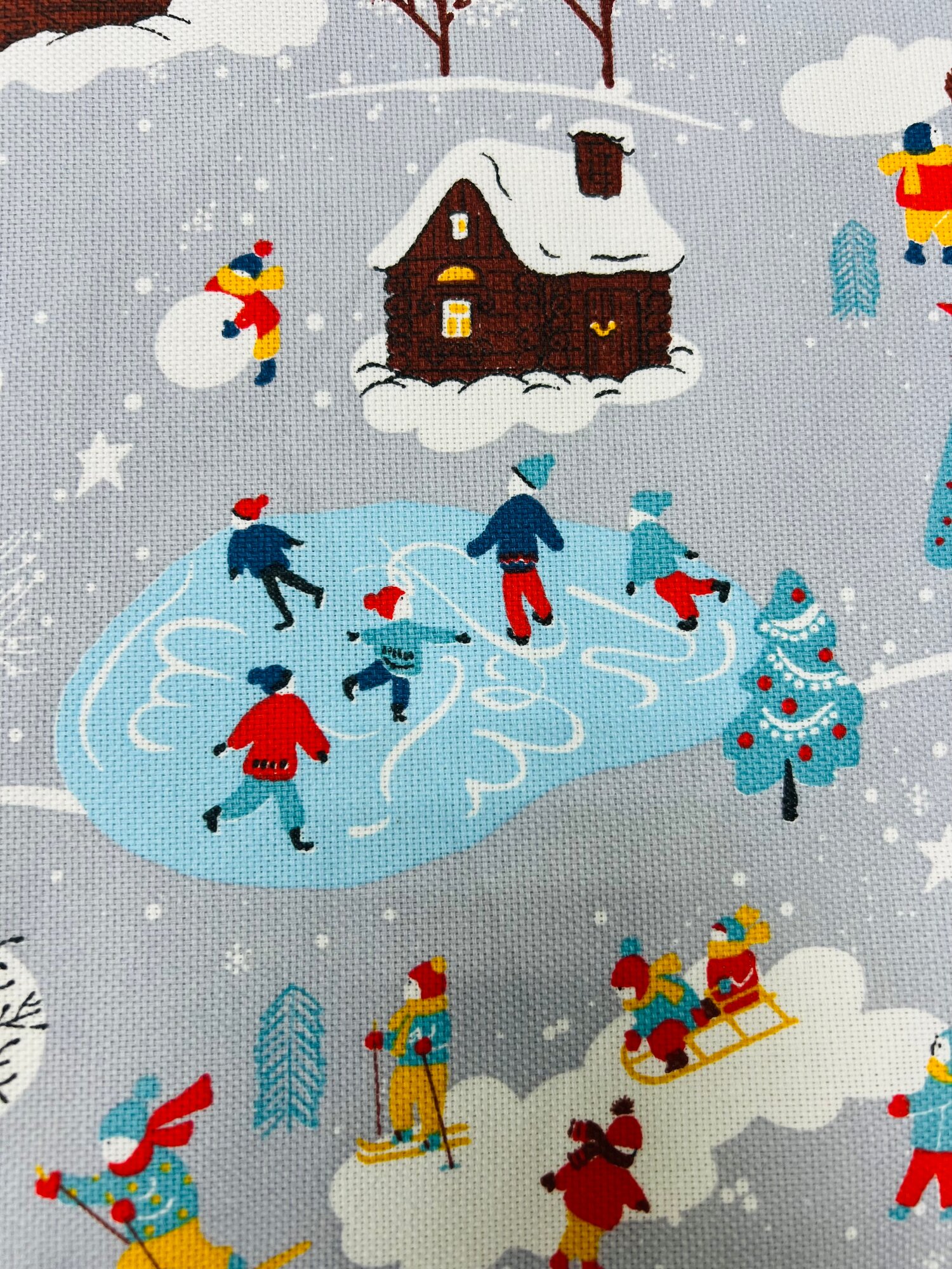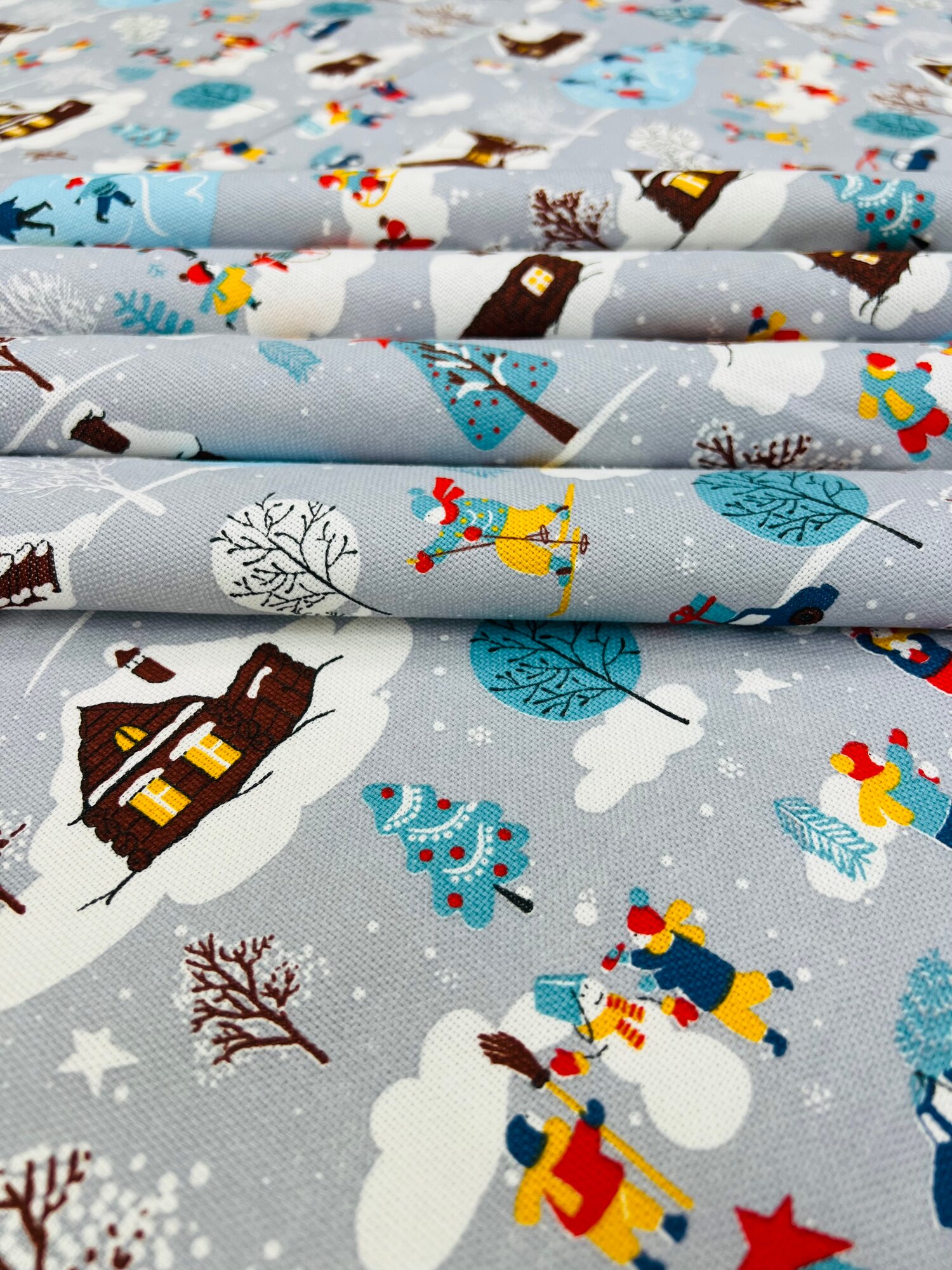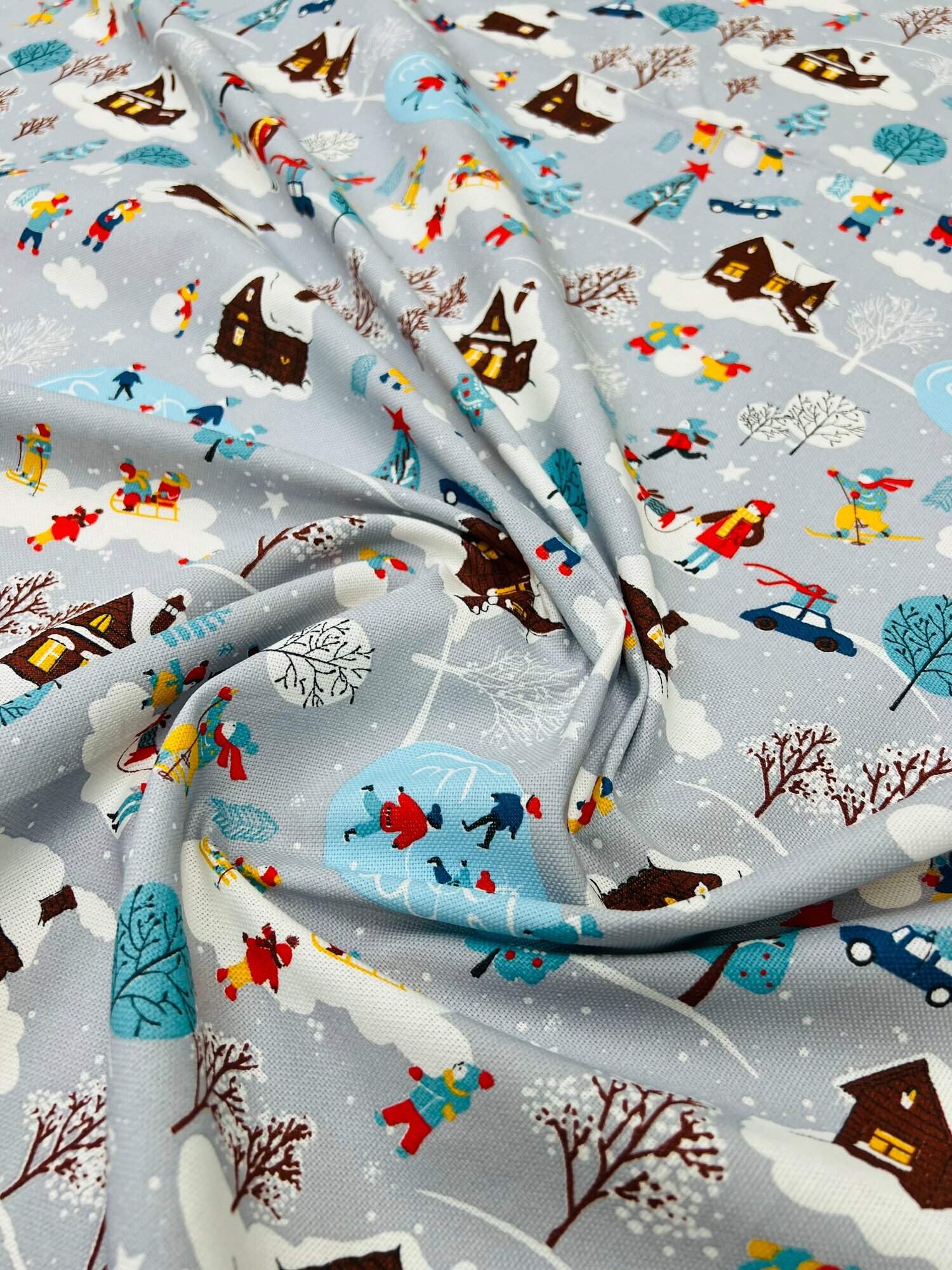 Купить Ткань Рогожка для шитья набивная, Зима Новогодняя, ширина 150 см, светло-серая, на отрез