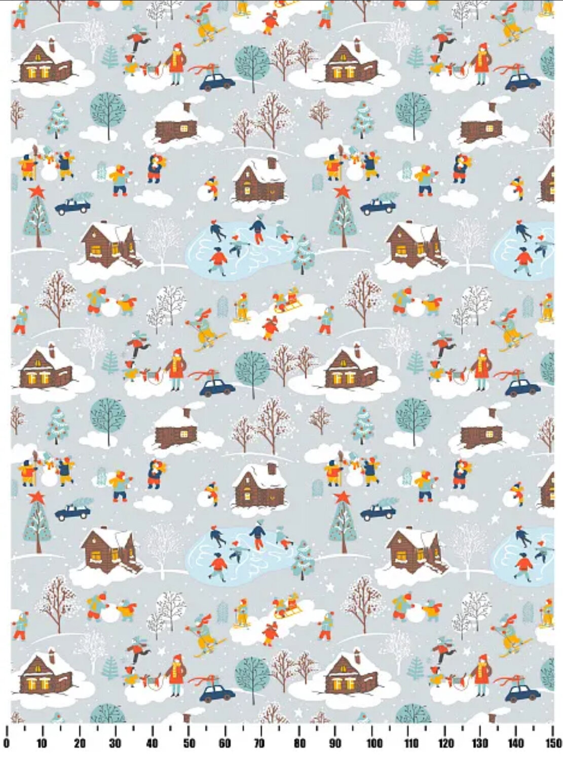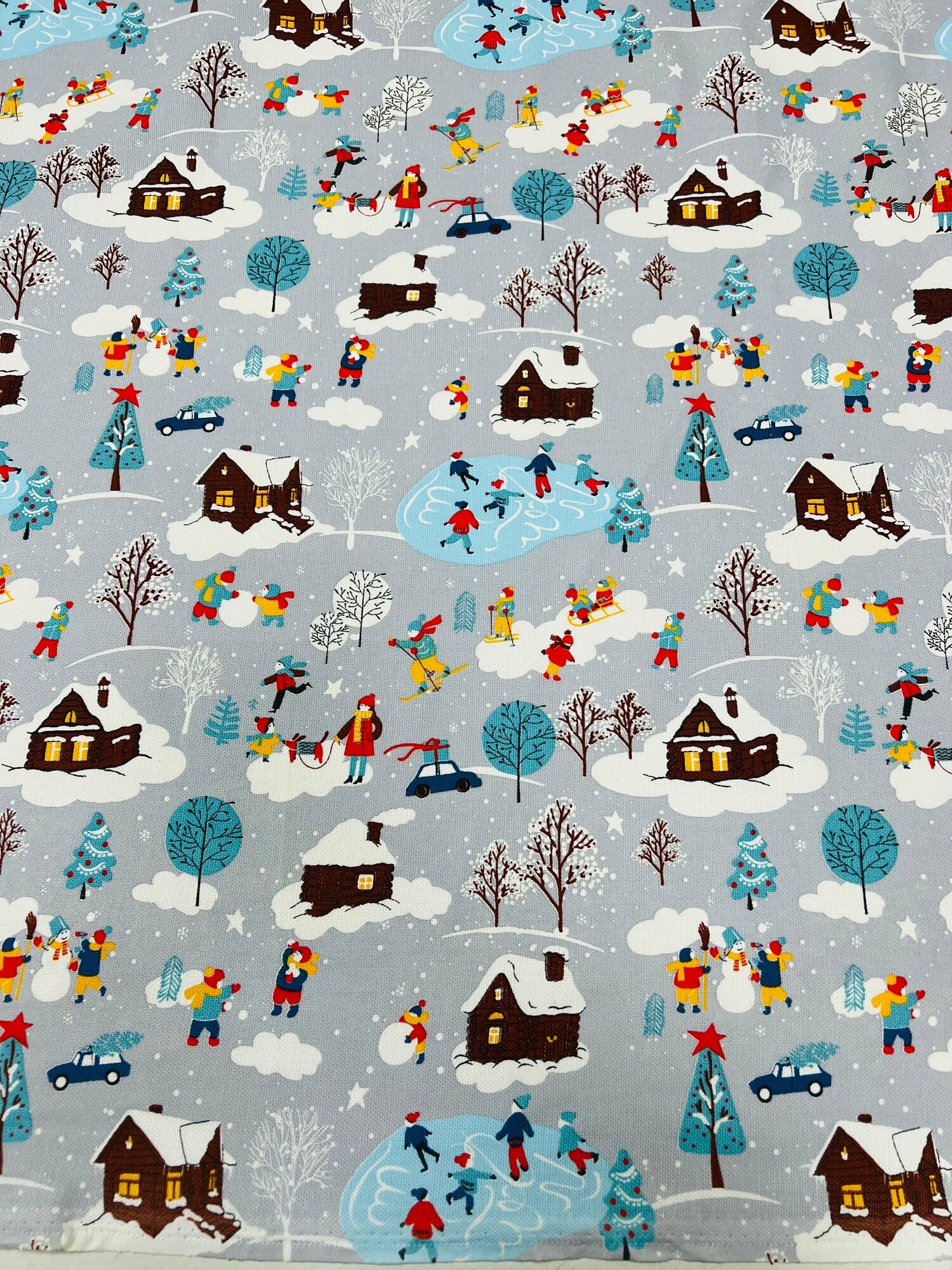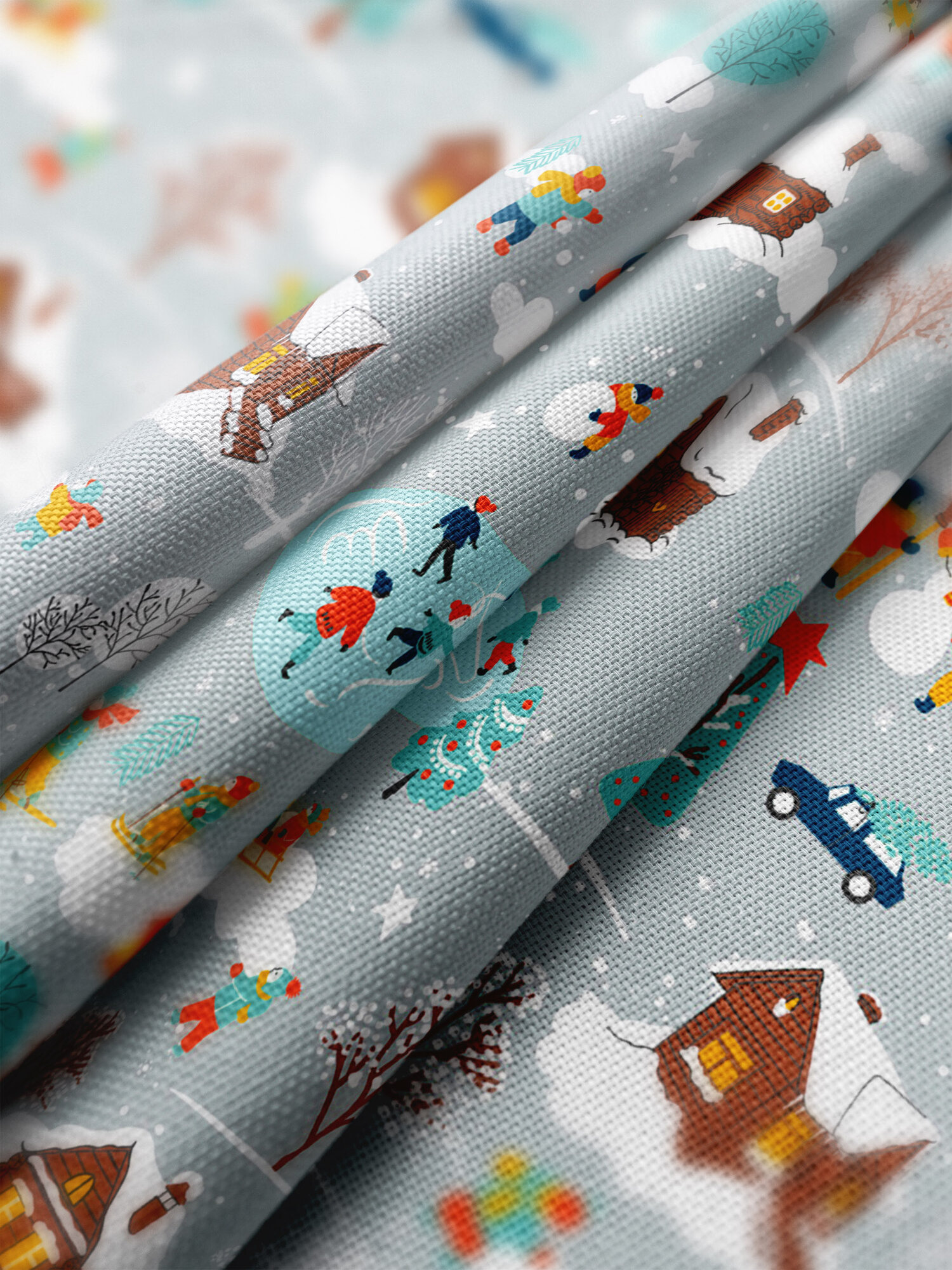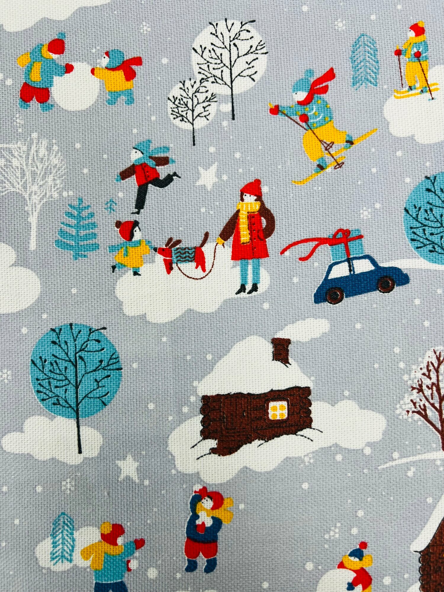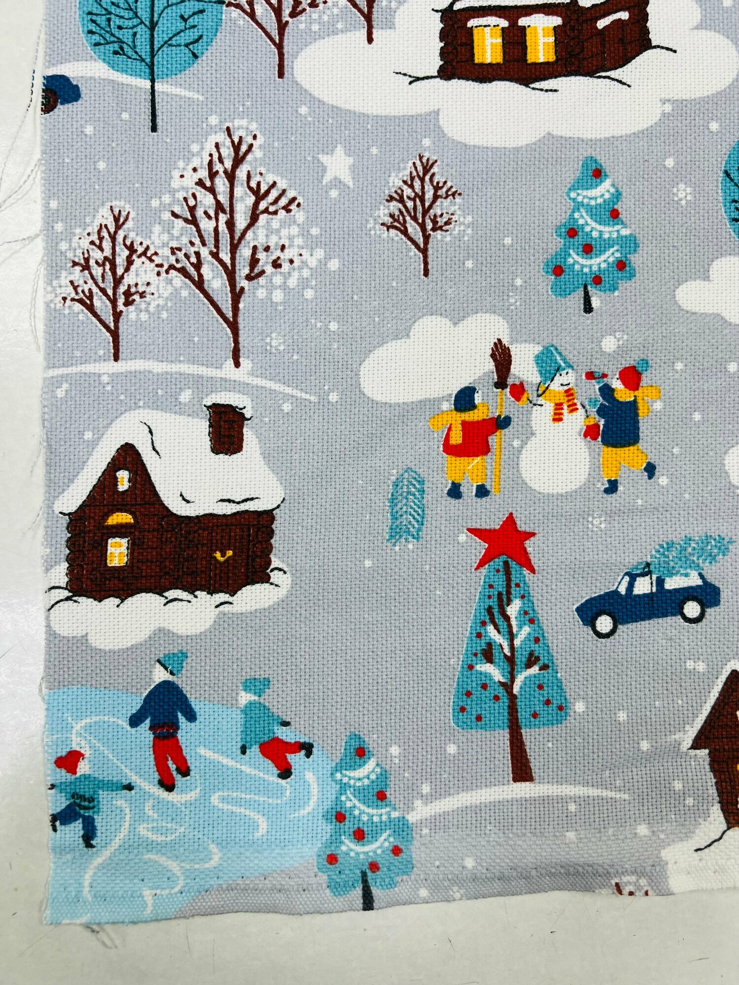 Купить Ткань Рогожка для шитья набивная, Зима Новогодняя, ширина 150 см, светло-серая, на отрез