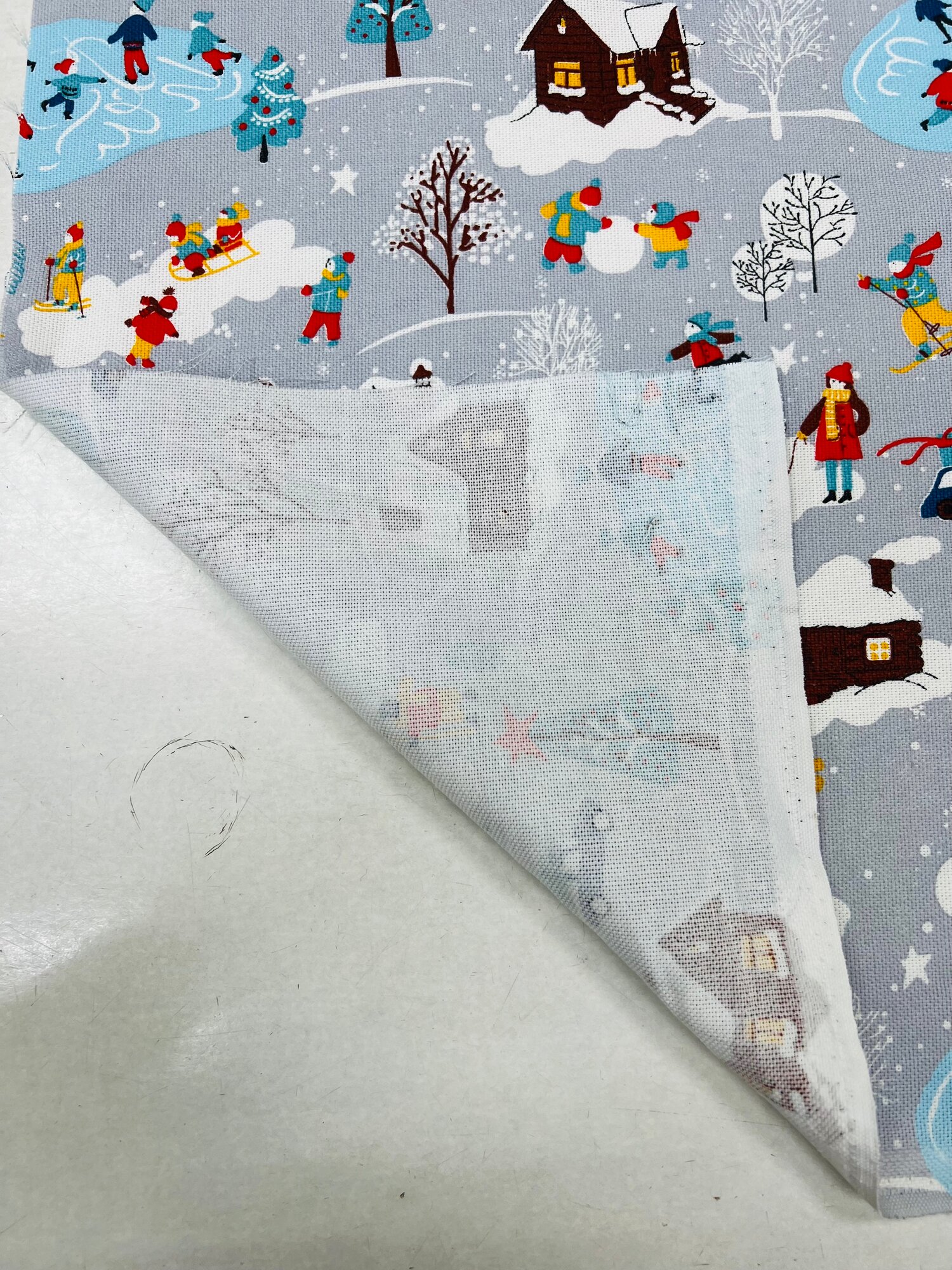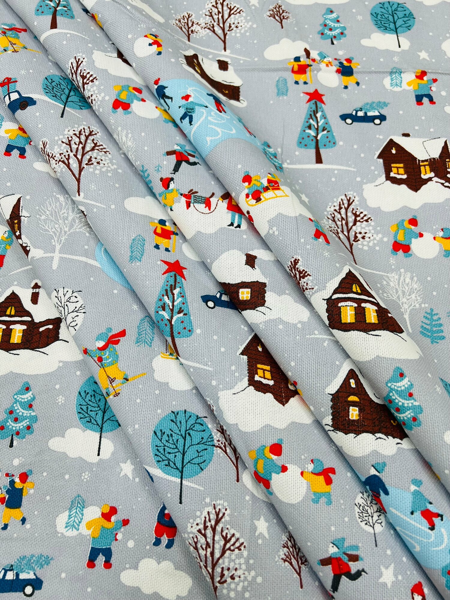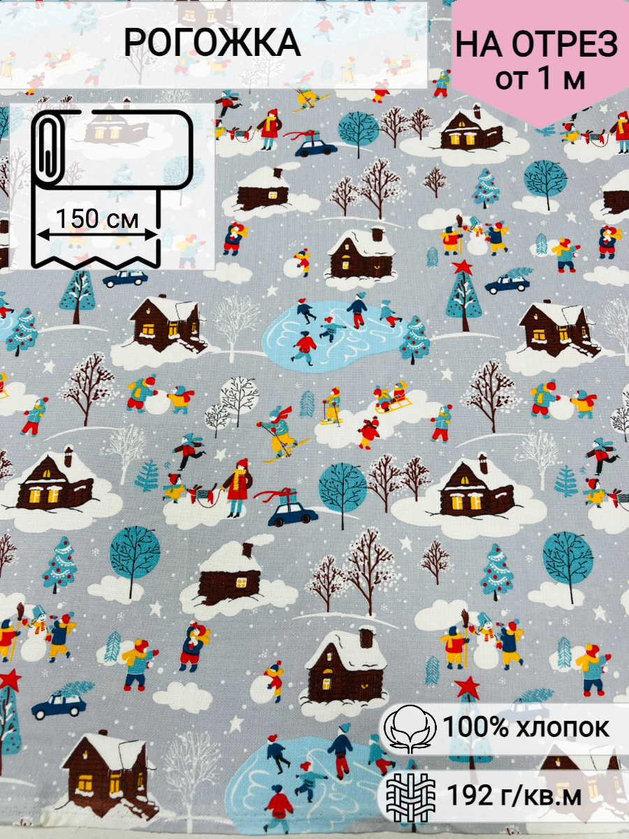 Ткань Рогожка для шитья набивная, Зима Новогодняя, ширина 150 см, светло-серая, на отрез интересное: