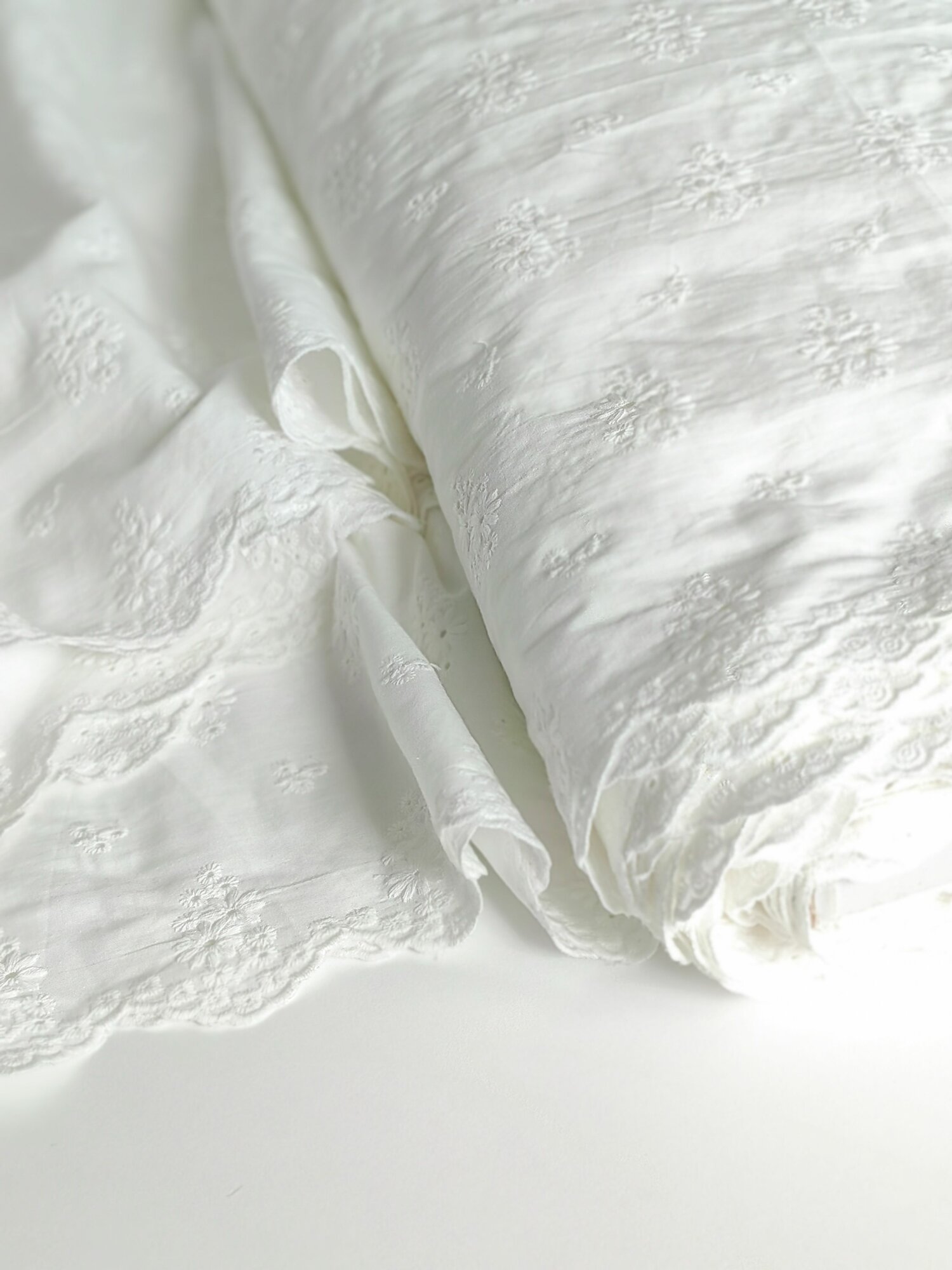 Купить Ткань для шитья блуз, платьев, юбок Воздушное хлопковое шитье с фестонами 100х130 см