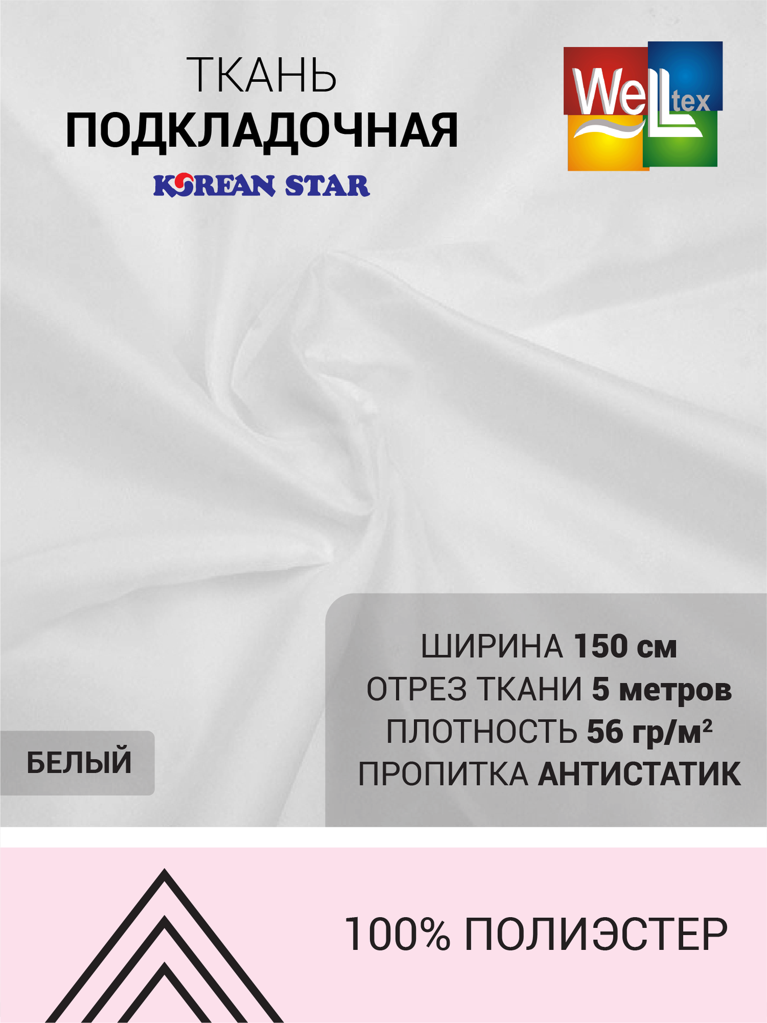 Ткань подкладочная 190T 56гр/м2, 100пэ, 150см, антистатик, белый/S501 (уп 5пм) KS интересное: