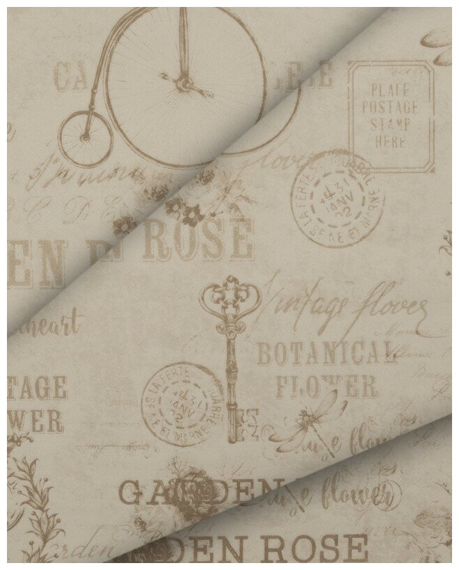 Ткань мебельная Велюр, модель Лояль, цвет: Принт на молочном фоне (13-1), отрез - 1 м (Ткань для шитья, для мебели)