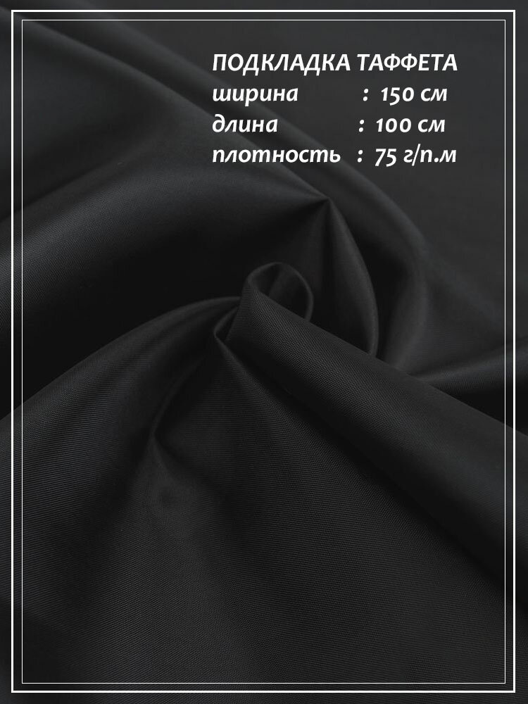 Отрез ткани для шитья домок Подкладка Таффета (черный) 1,0 х 1,5 м.