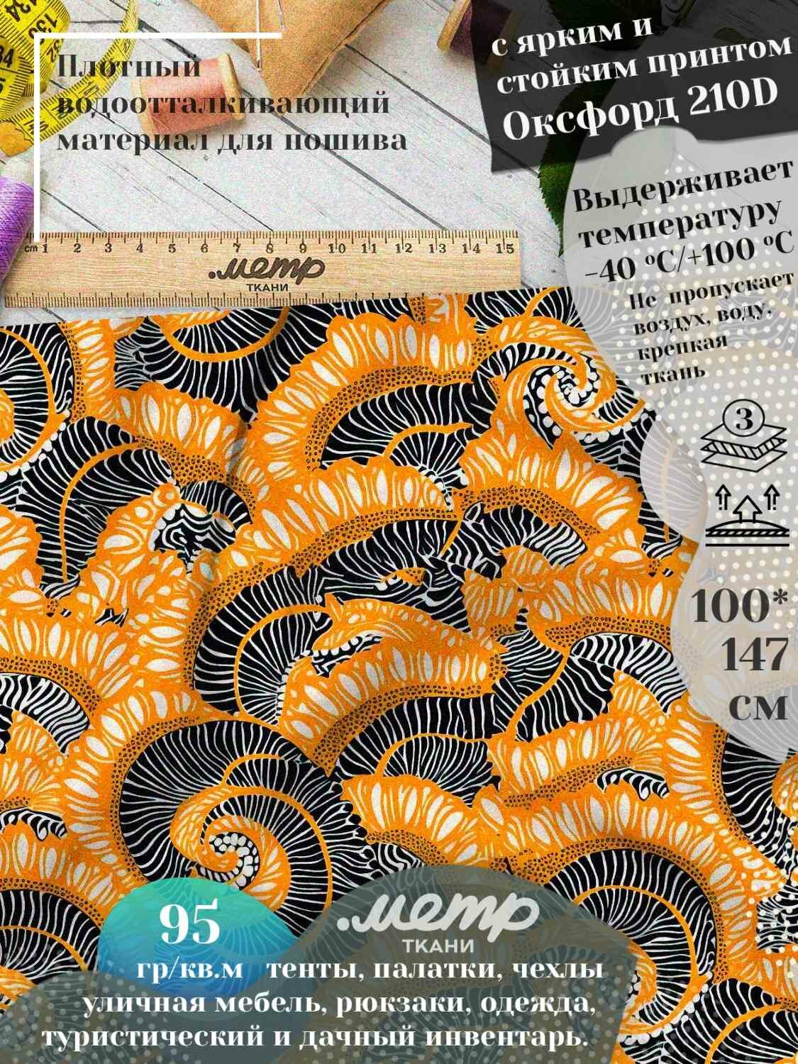Ткань для шитья Оксфорд 210D, влагостойкая, WR PU, 95 г/м , принт, отрез 148х100 см