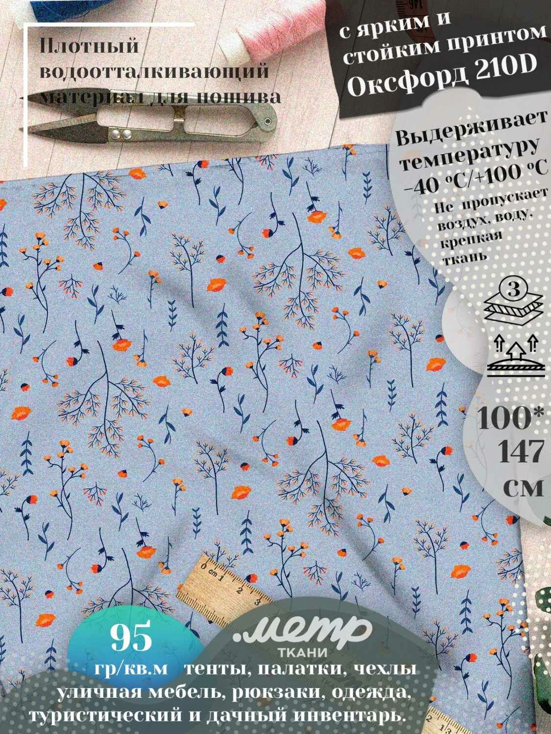 Влагостойкая ткань для шитья Оксфорд 210D, WR PU, 95 г/м , отрез 148х100 см, принт