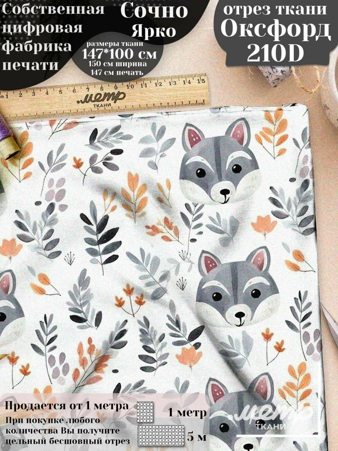 Прочная ткань для шитья Оксфорд 210D, 95 г/м , влагостойкая, отрез 148х100 см, принт