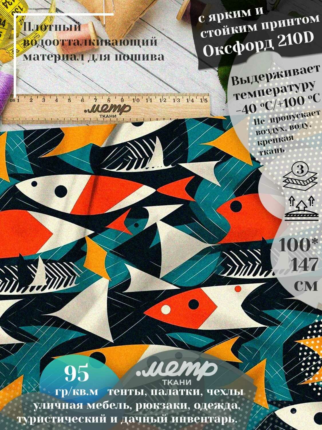 Ткань для шитья Оксфорд 210D с рисунком, 95 г/м , влагозащитная, отрез 148х100 см, принт