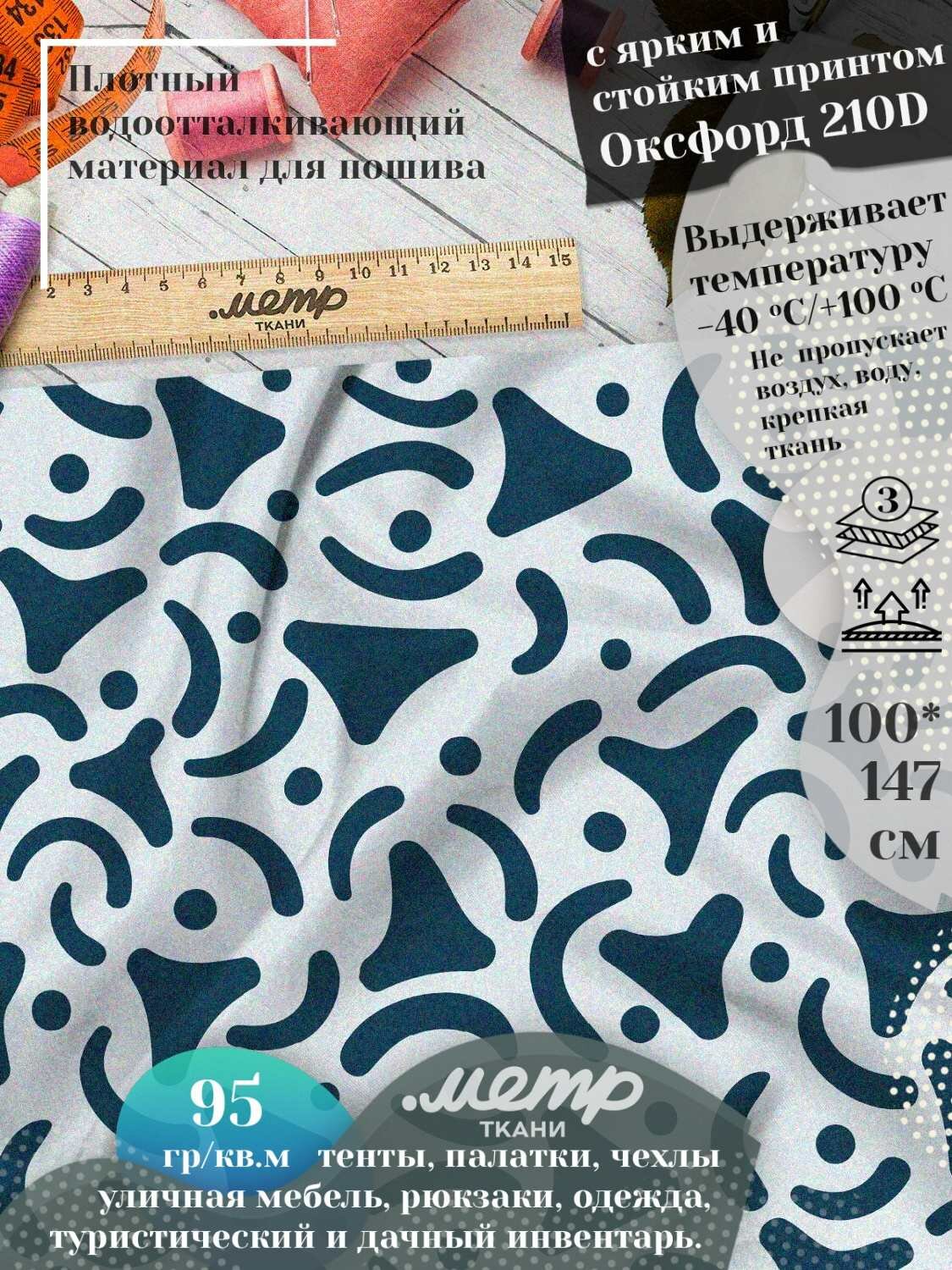 Влагостойкая ткань для шитья Оксфорд 210D, WR PU, 95 г/м , отрез 148х100 см, принт