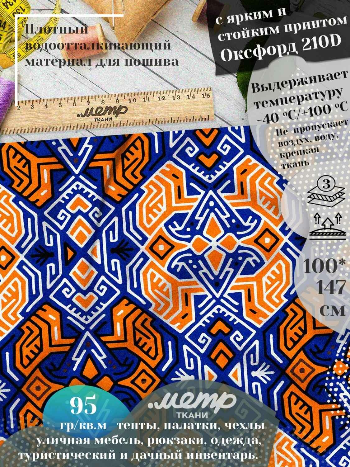 Влагостойкая ткань для шитья Оксфорд 210D, WR PU, 95 г/м , отрез 148х100 см, принт