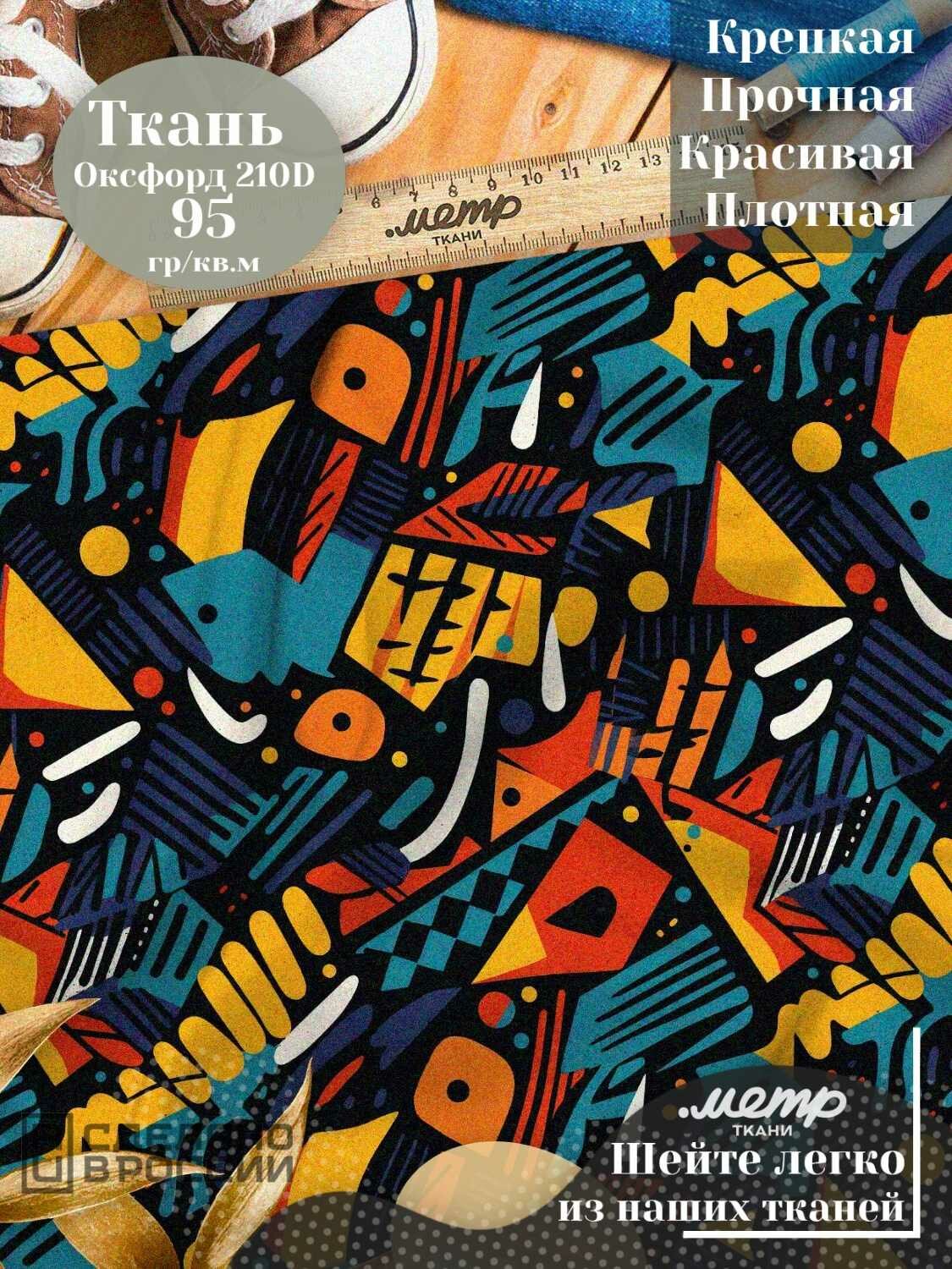 Прочная ткань для шитья Оксфорд 210D, 95 г/м , влагостойкая, отрез 148х100 см, принт