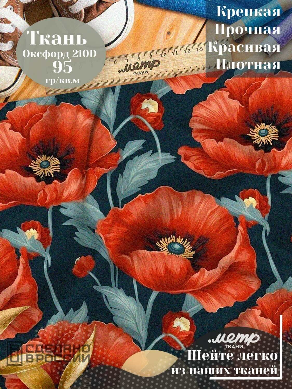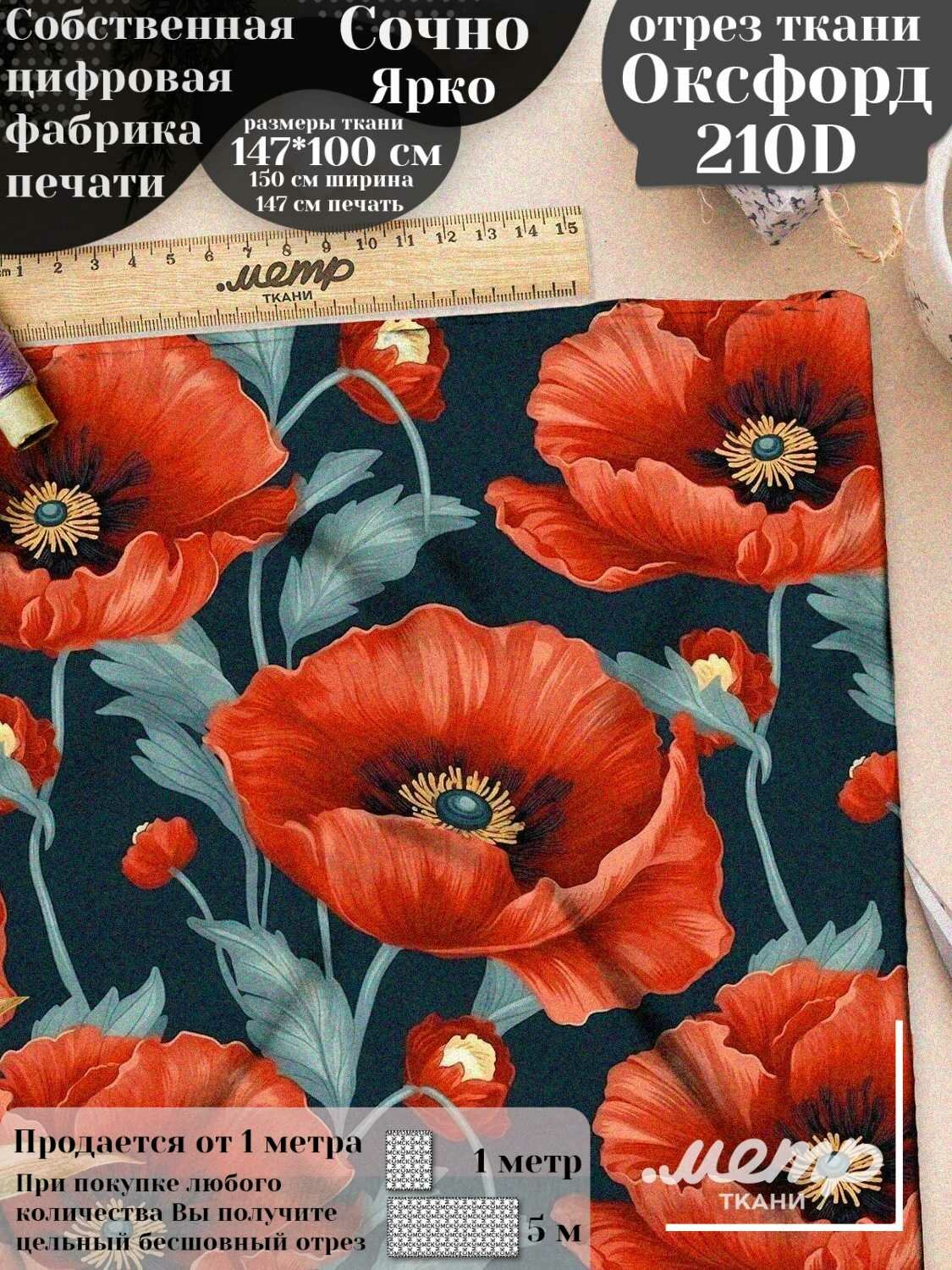 Прочная ткань для шитья Оксфорд 210D, 95 г/м , влагостойкая, отрез 148х100 см, принт