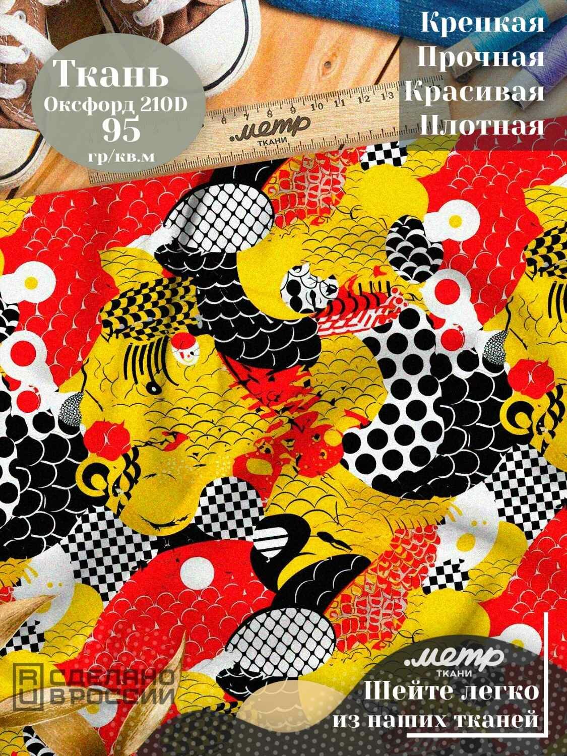 Прочная ткань для шитья Оксфорд 210D, 95 г/м , влагостойкая, отрез 148х100 см, принт