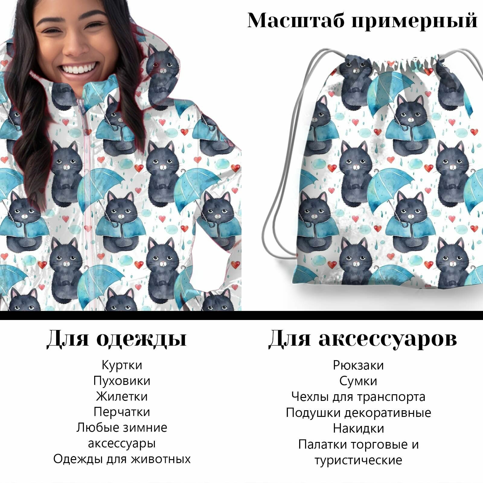 СохранитьТкань водоотталкивающая Оксфорд 210D WR PU, 95гр/кв. м, принт (1х1,5м) Кошки, коты, котики интересное: