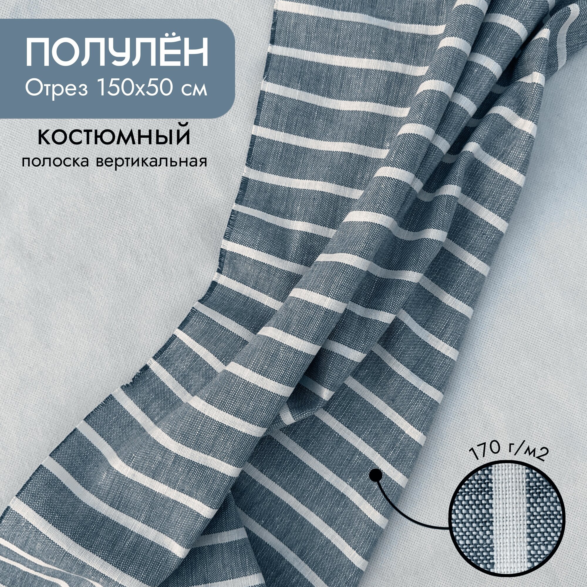 Ткань на отрез, костюмная полулён "Морская пучина" 0,5х1,5 м, синяя в полоску интересное: