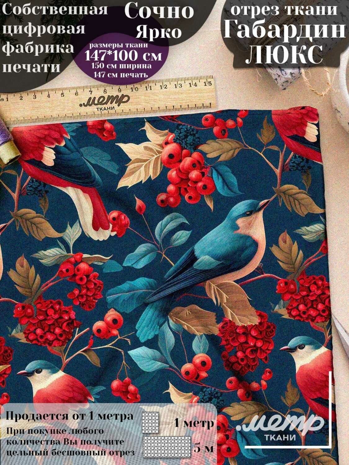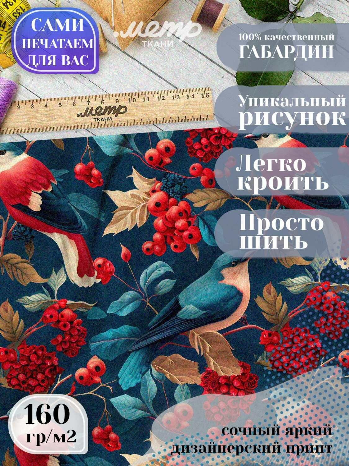 Ткань габардин с принтом для подушек, фартуков, штор. 160 гр/м2, размер 150*100 см, отрез любой длины