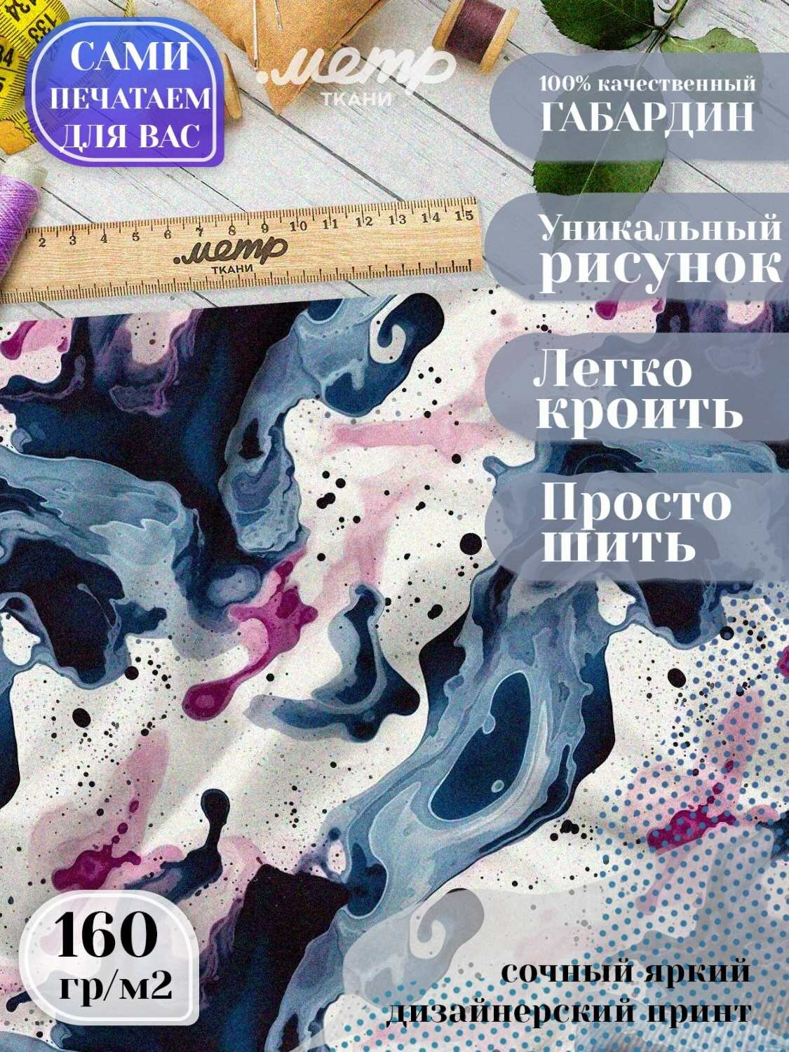 Ткань габардин с принтом для шитья, рукоделия, костюмов. 160 гр/м2, размер 150*100 см, отрез любой длины